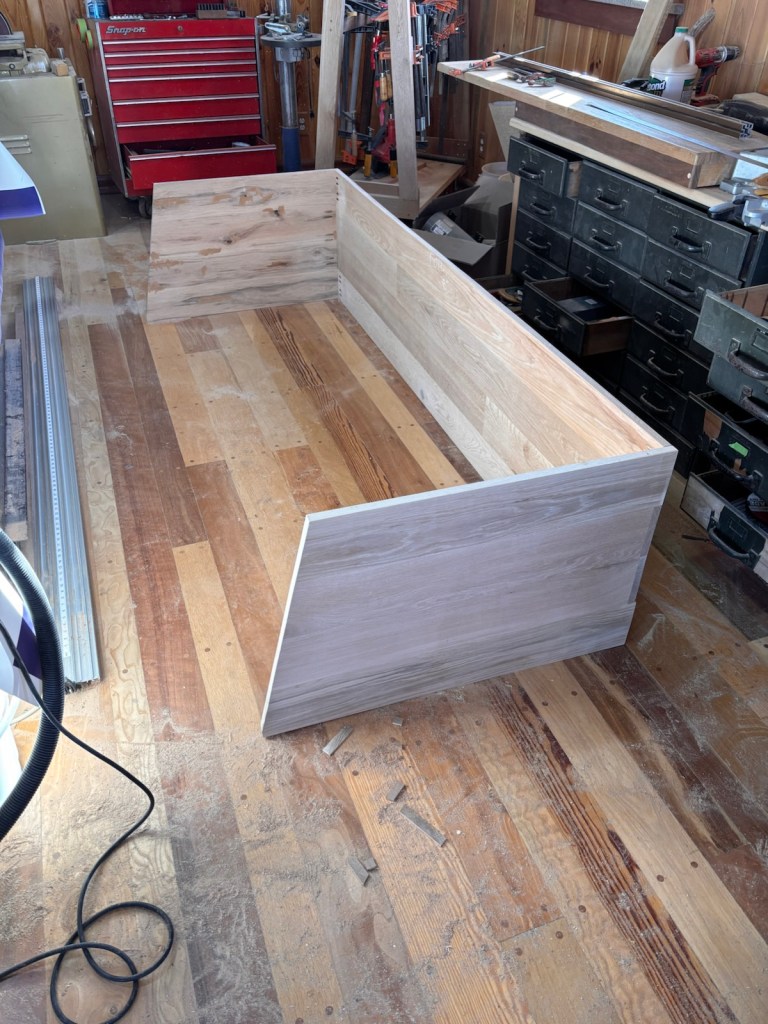 Today was going to be assembly day, this was when the enormity of the piece was going to be revealed. I made a few adjustments so the parts fitted tightly together, then drilled the pocket holes.