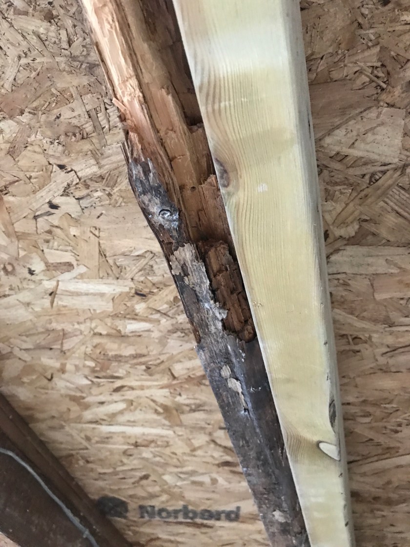 I managed to add a new timber to the rotten joist in the bathroom, bolting it to the existing one, there was a spare piece of five by two, (that I obviously paid for,) and long nuts and bolts (I also paid for) that were just right for the job.