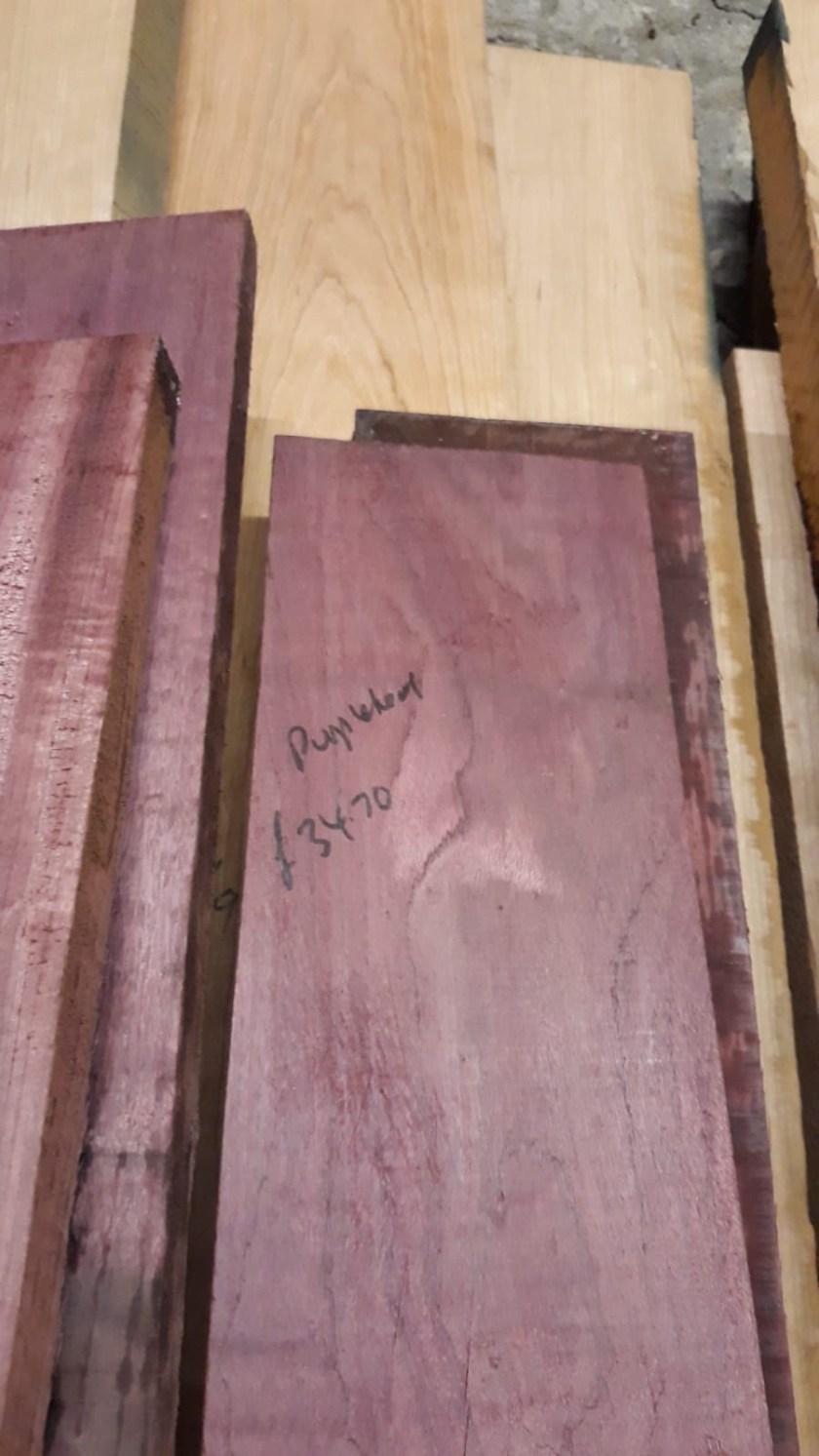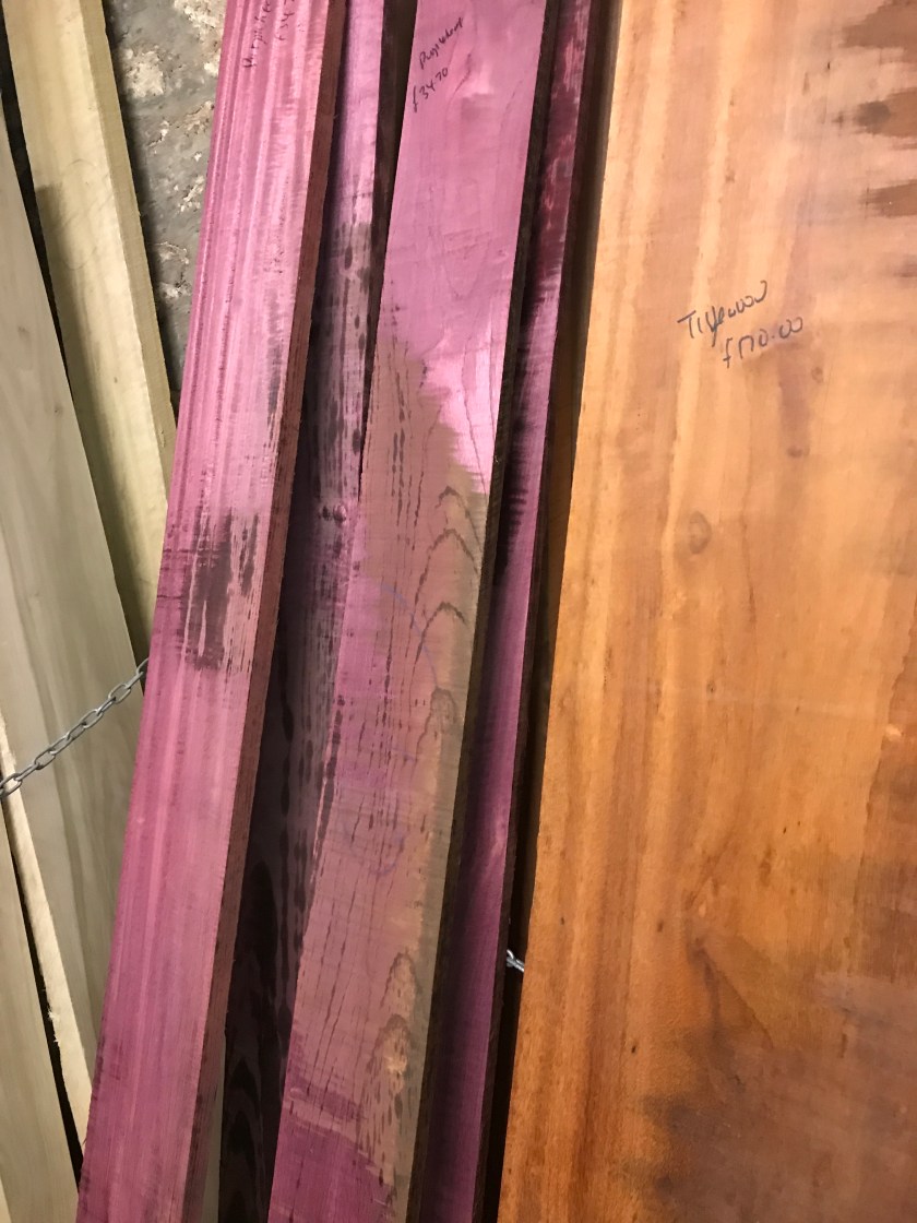 Colin wanted timber for some blocks to raise a dresser off the ground. Whilst he was doing that, I wandered through the different rooms looking through racks and racks of planed planks. The most unusual was Purple Heart wood from South America, it colour, as its name describes, was amazing.