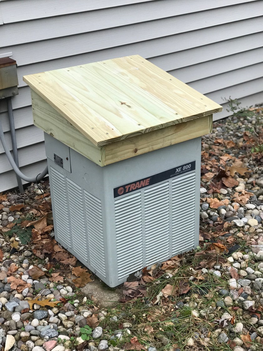 I completed the clearing of the leaves, and fitted the A/C fan protector, which is just in time as more snow is predicted.