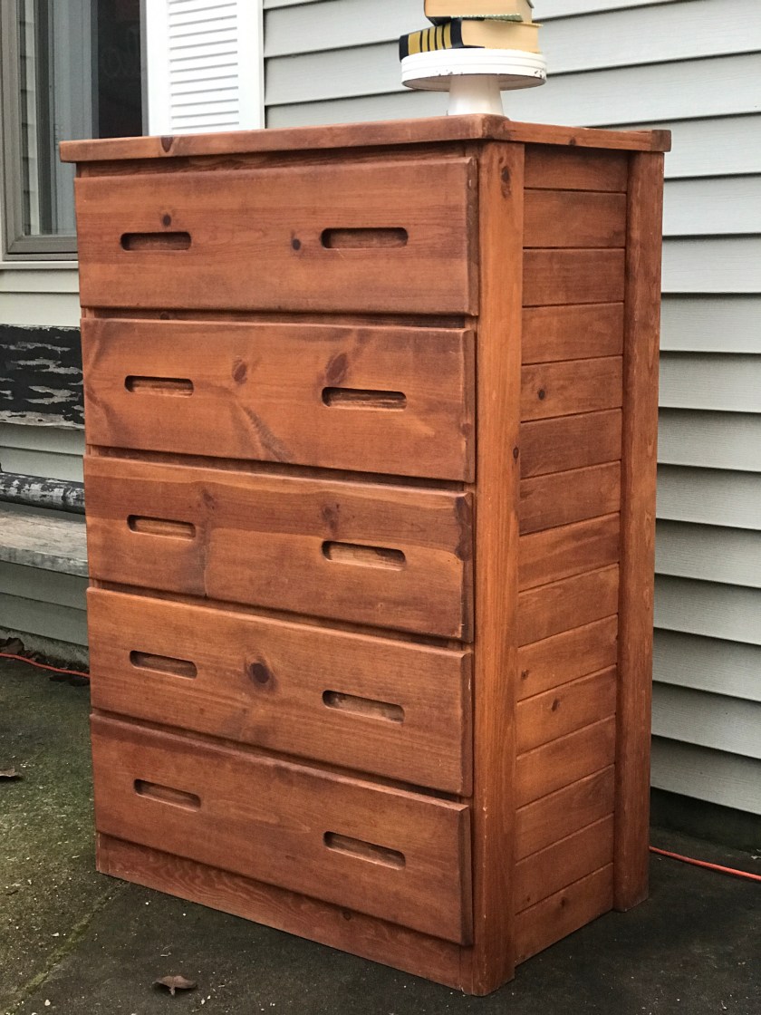 We took some pictures, did a quick repair to the base, and fix the bottom drawer. Kelli listed it on Marketplace, and Boom! It was sold.