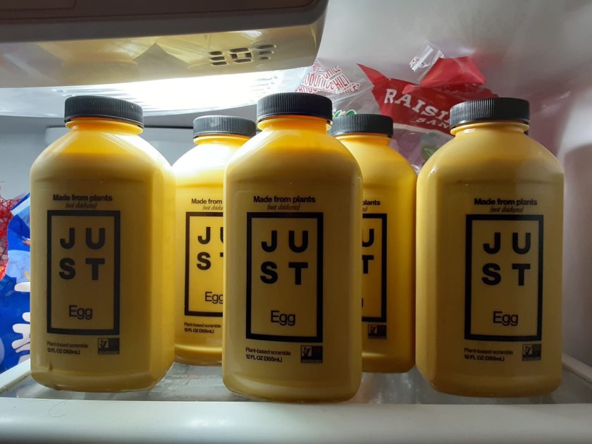 In a postscript, we stopped off at a Aldi in Grandville, and bingo we found stock of Just Egg. Kelli spotted it at a thousand yards and moved at a speed I have never seen before. She was a blur, she would have severely injured anyone who got in her way, it was like she was racing to grab the last loaf in a Russian supermarket. She grabbed as many as she could and we made our escape.