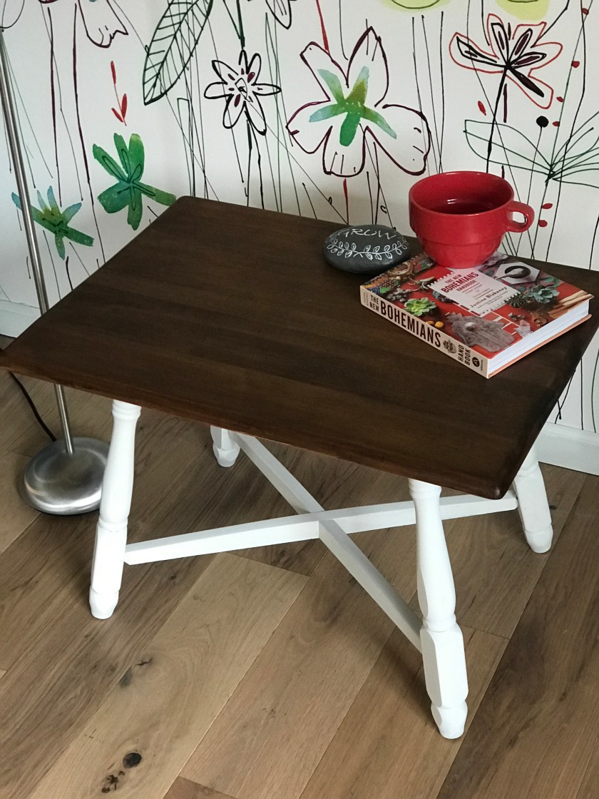 We had someone pick up a small table, which was a Goodwill find, that just needed a bit of loving care. Everyone who comes to the house loves all the funky things and colours that Kelli had blended together, it’s great to hear all the compliments.