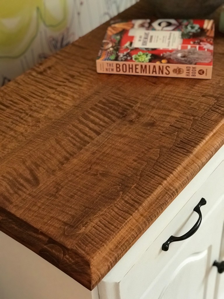 Kelli had finished a cabinet that we bought last week, it was a simple paint job, but the top, which I had stripped, was a very figured timber, and looked pretty good.