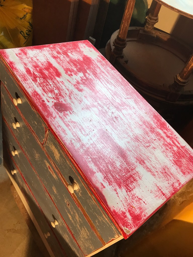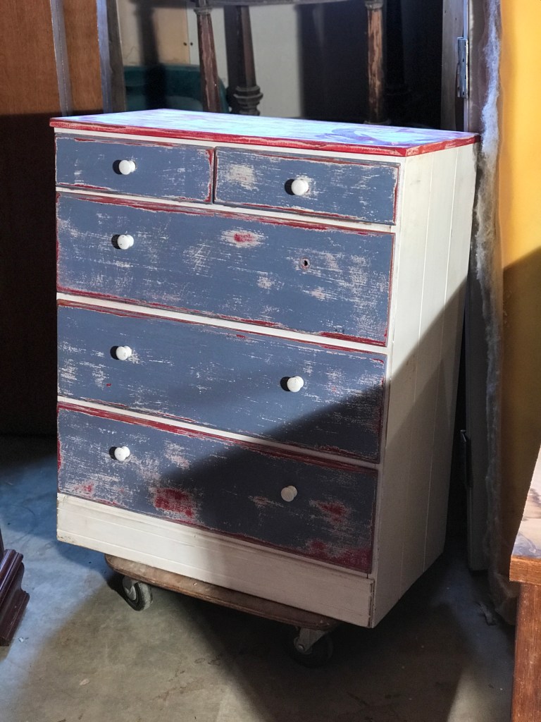 The dresser was covered with a white sheet and left on the front porch. The money had to be placed in an envelope and left in the mailbox, this was extremely trusting, considering the building next door was a burnt out ruin. For once we kept the engine running as I whipped the sheet off expecting something gruesome underneath, and there was, the dresser. It looked like it had been painted by someone colour blind.