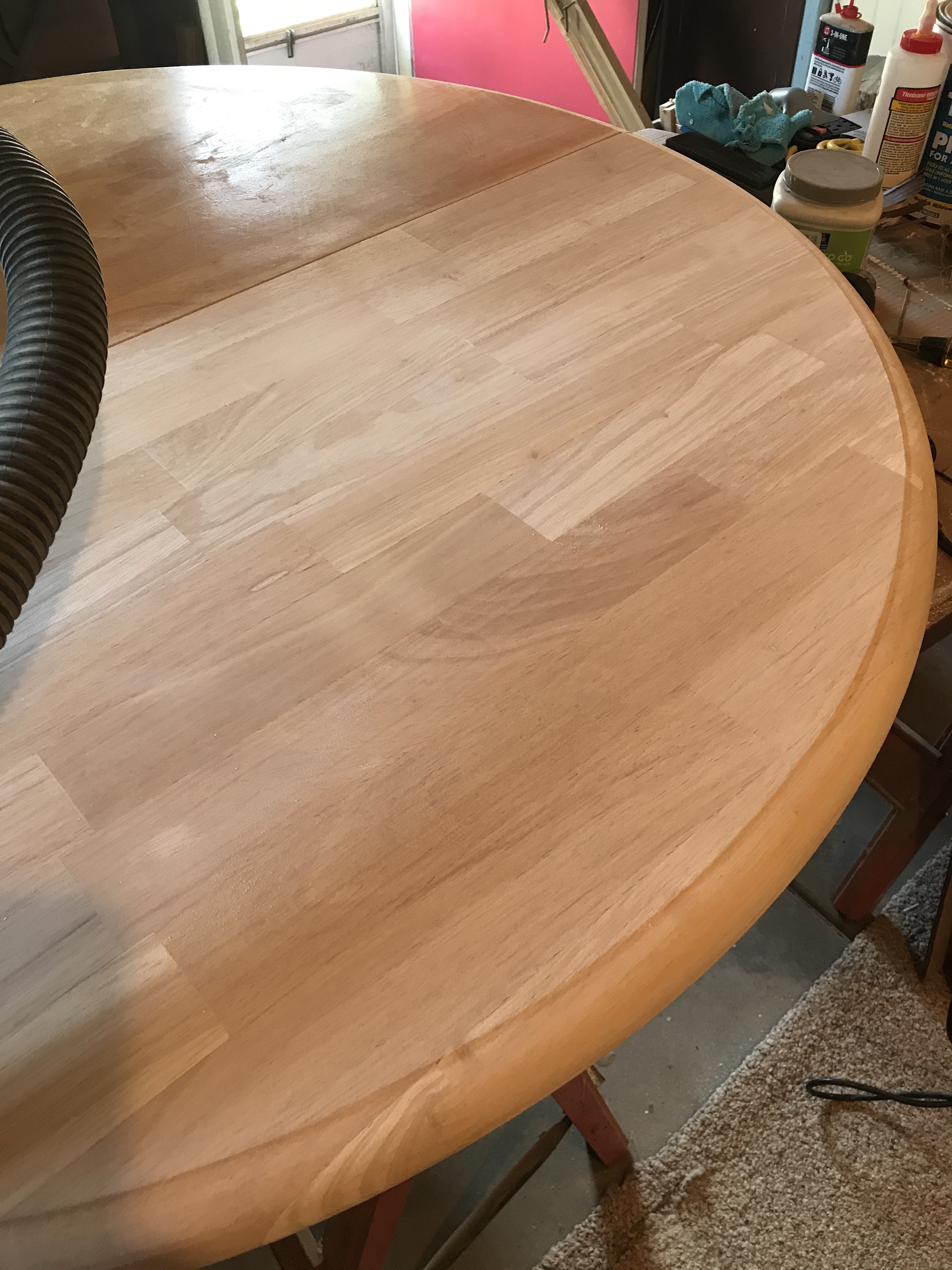 I had the whole round top stripped in about an hour and a half. All that is left is the extension pieces and the under frame.