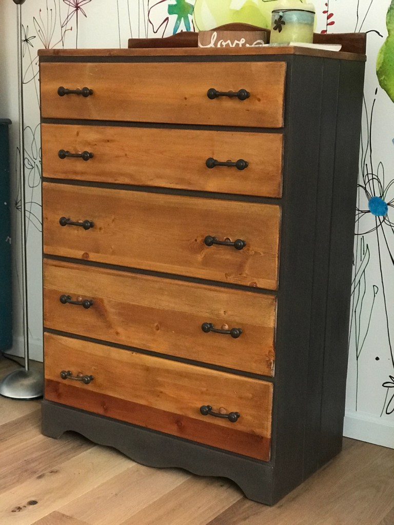 We got back home and immediately started work on a tall dresser that we picked up a couple of days ago. We had gone to the Habitat store to buy some new handles for it, and we were determined to get it posted.
