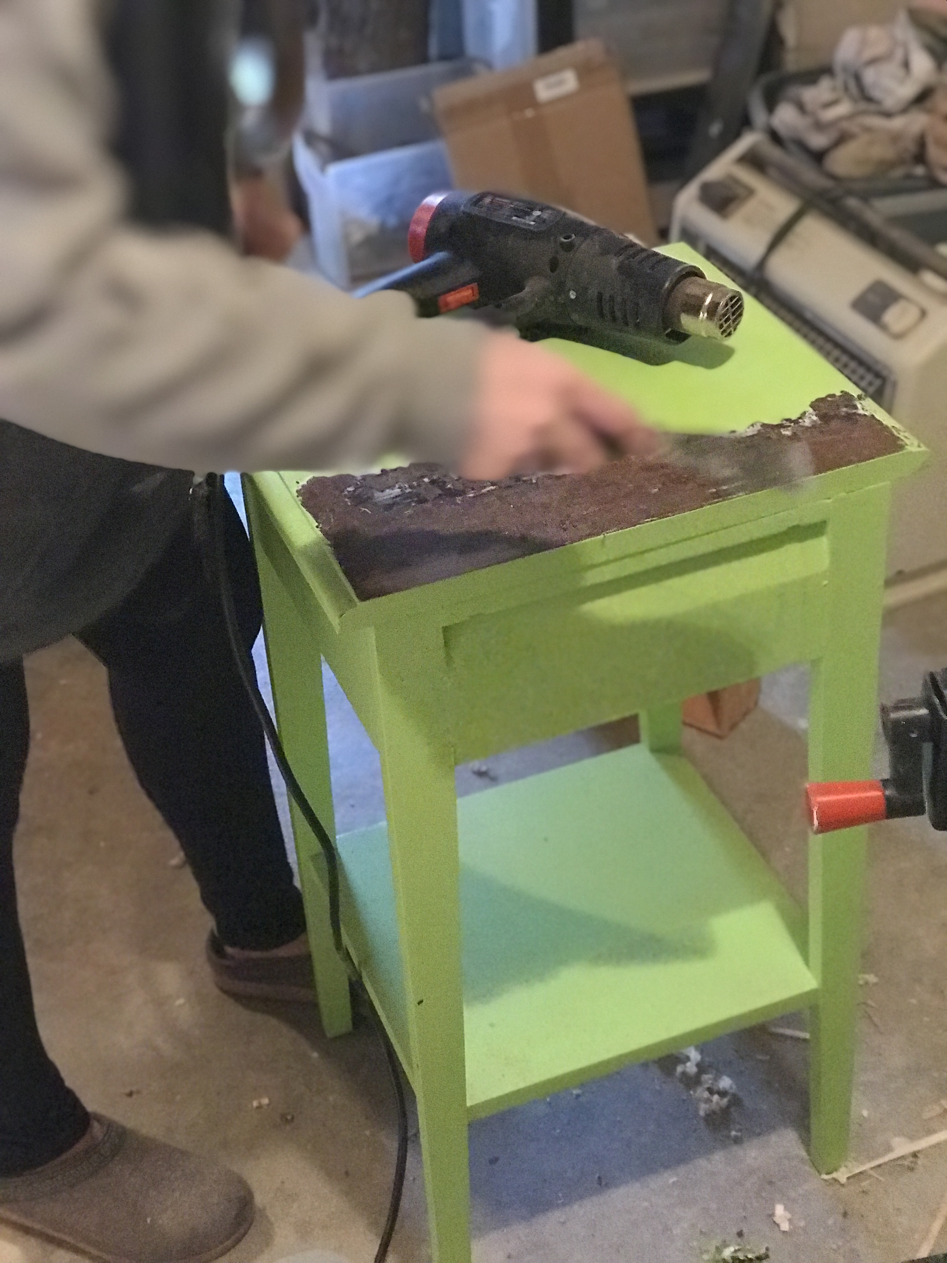 It was also time to start dismantling the turquoise desk that we got from a thrift store a couple of days ago.