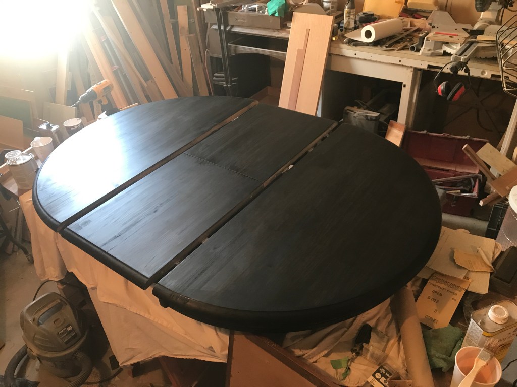 I put the final coat on to the centre leaves of the dining table, I just want it out of here now.