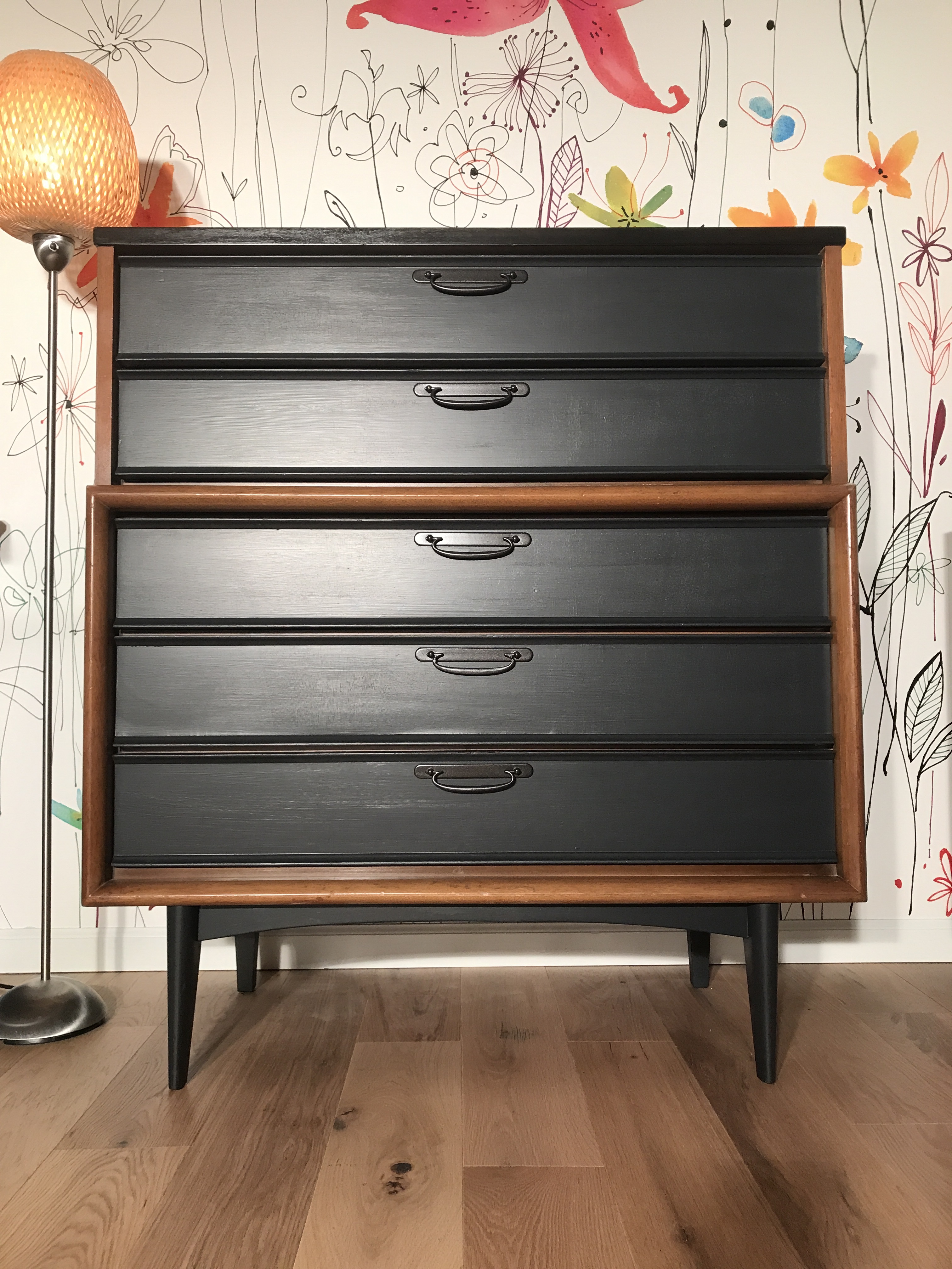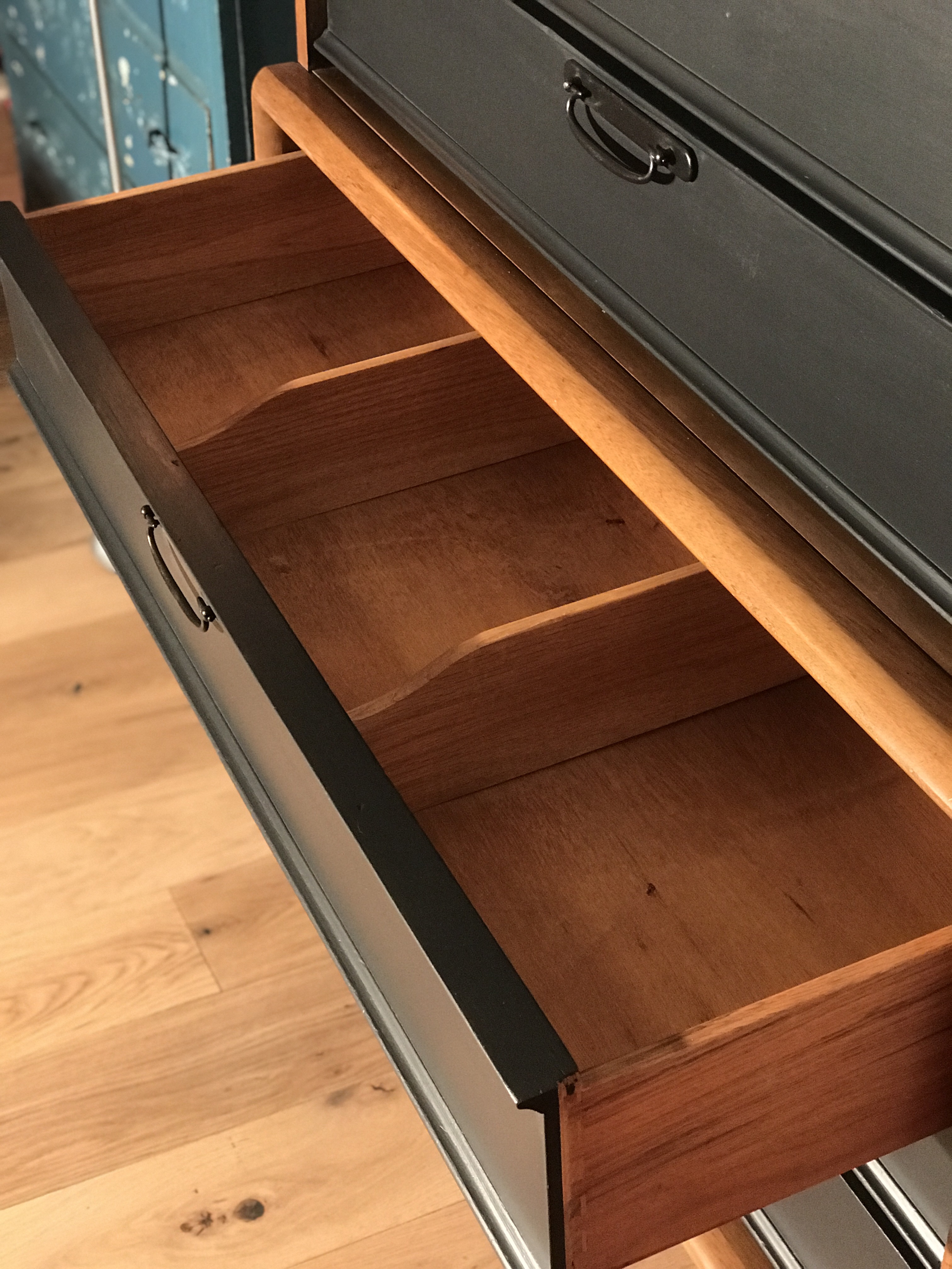 We brought the Mid Century dresser into the house, I coated the top again, and once dry, took photographs, then Kelli posted it on Marketplace.