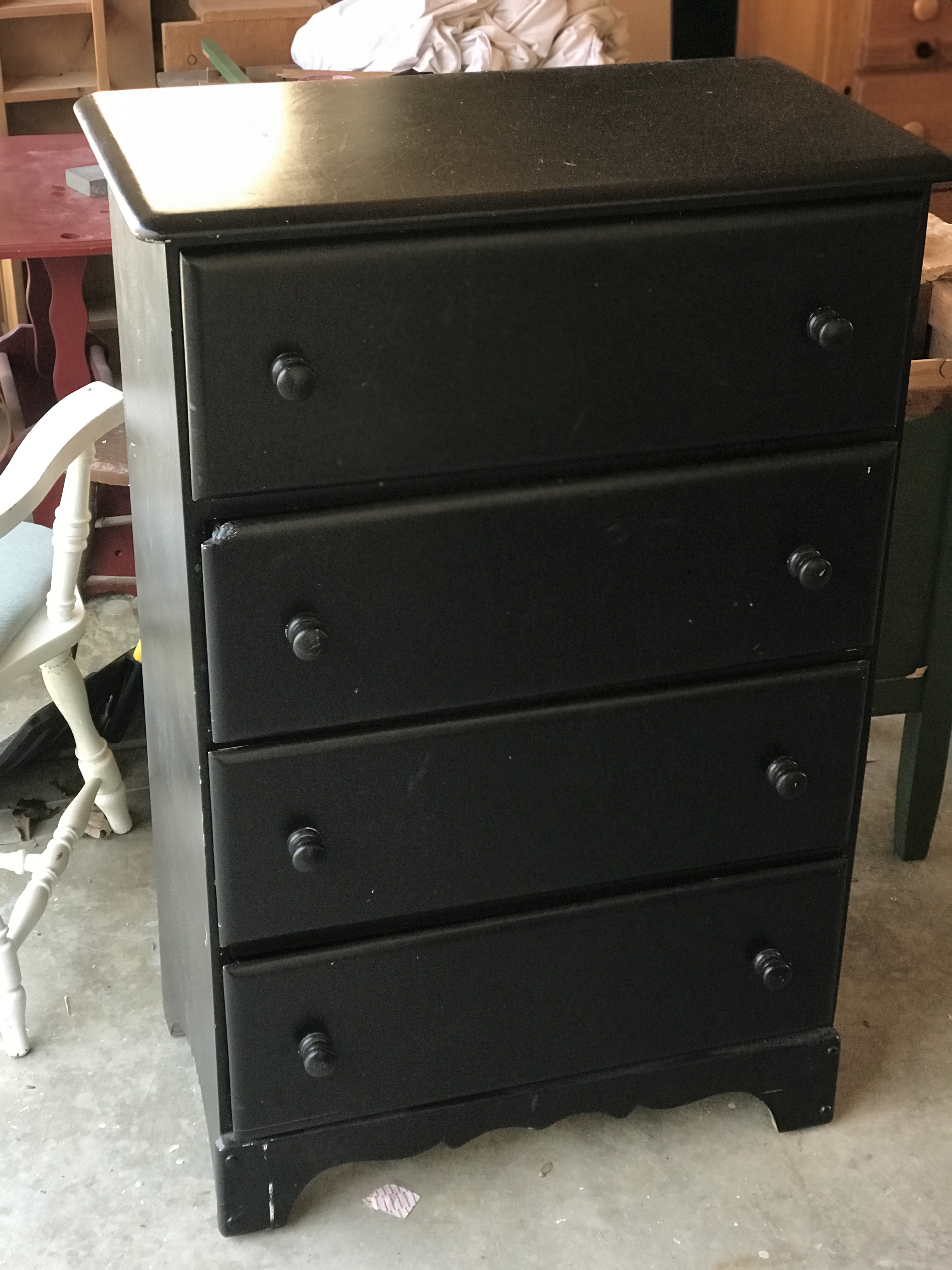 Whilst she was out Kelli found a small dresser at Goodwill but it didn’t have a top drawer. She didn’t buy it at the time because she wasn’t sure we could do with it, and besides we have three waiting in the garage.