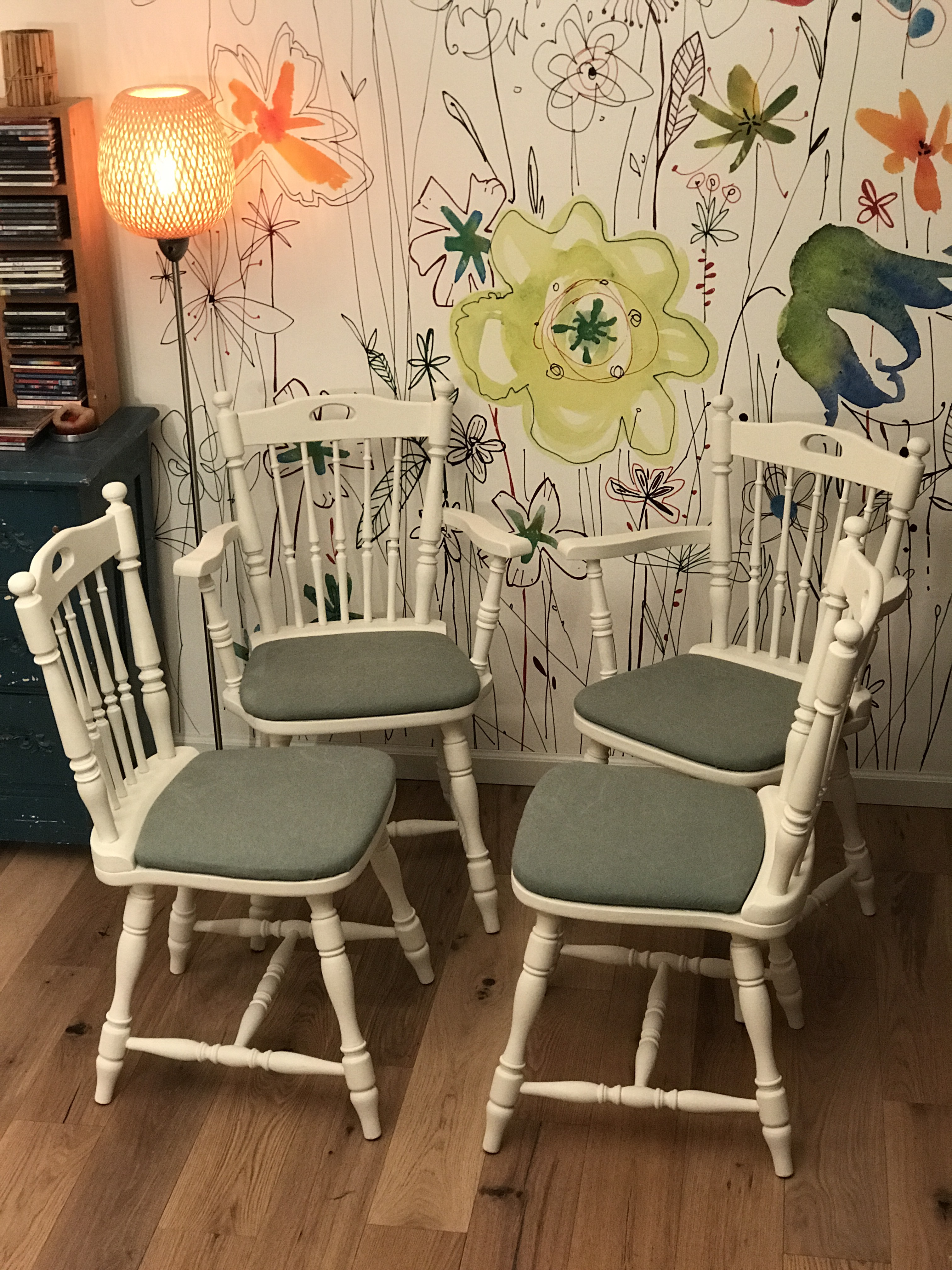 Kelli went off shopping, which means Aldi and Goodwill, when she returned, she announced that we had to take the chairs and meet someone in a car park on the north side of town. Carefully we loaded them into the back of the truck, placing padding in between. That is when the places that were missed became visible. Then it was a frantic effort to touch it up.