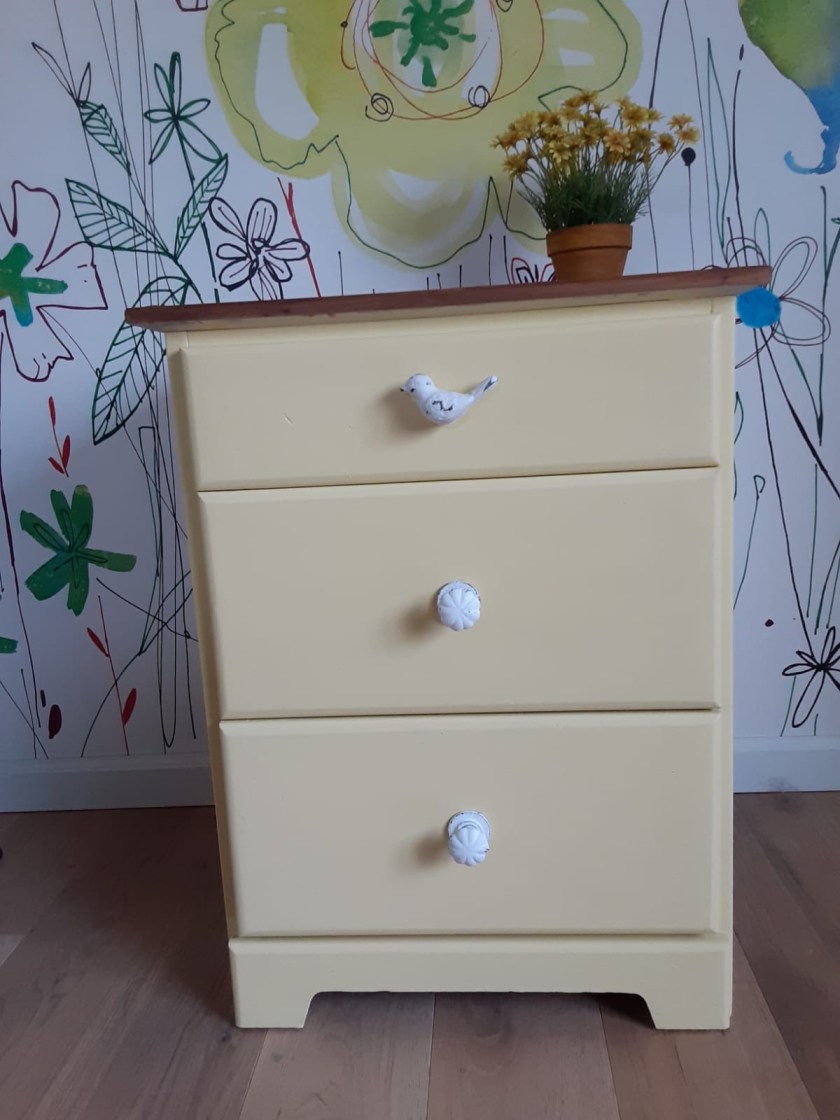 We finished another dresser which had the missing drawer, I had made a plywood liner to fit inside, and Kelli had found a basket that fitted inside. This was listed as a piece that could go in a small child’s room or nursery.