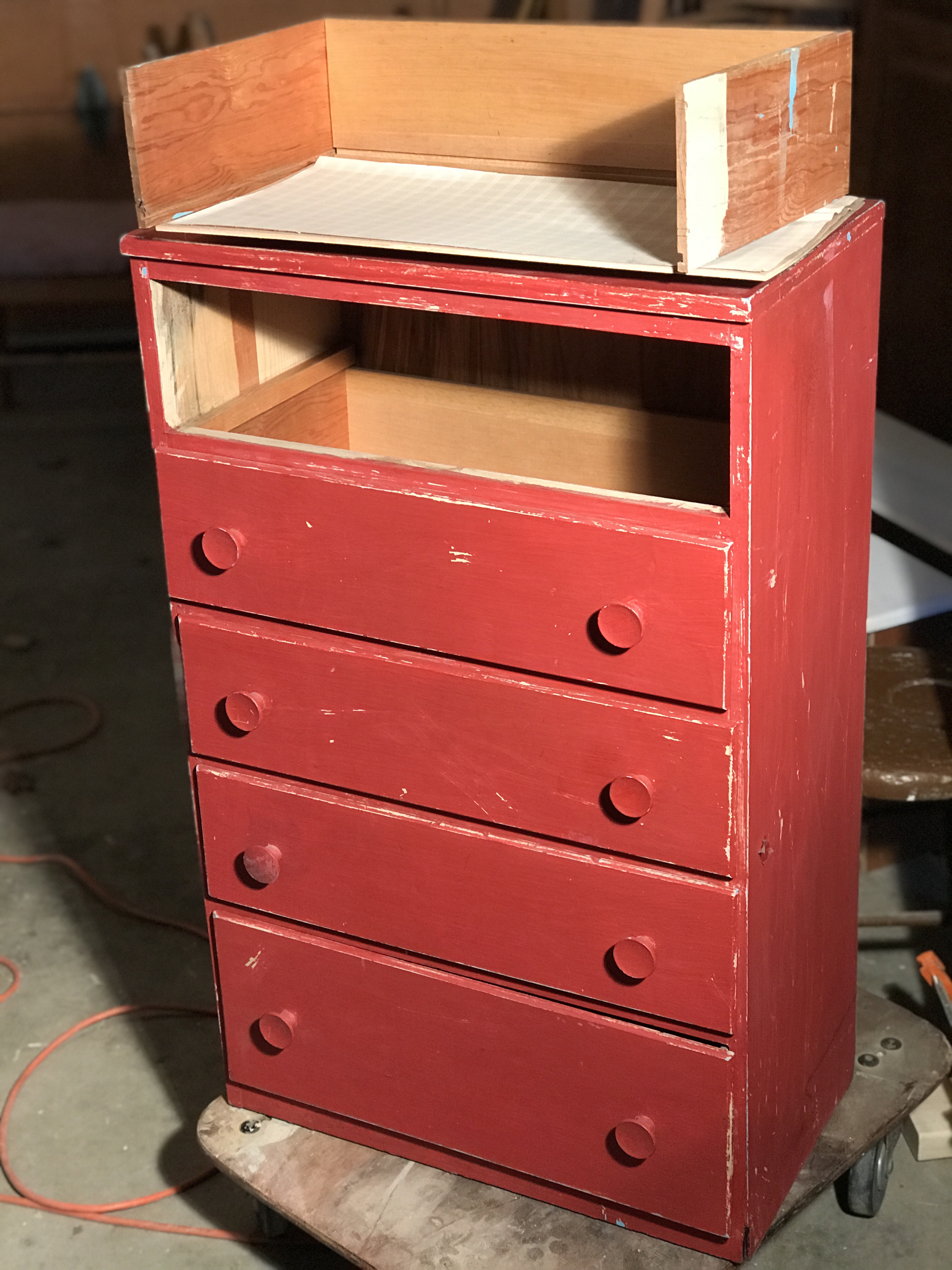 The small dresser was on the porch waiting for us. It was smaller than I imagined, and had the top drawer front missing, so guess what I will be making?