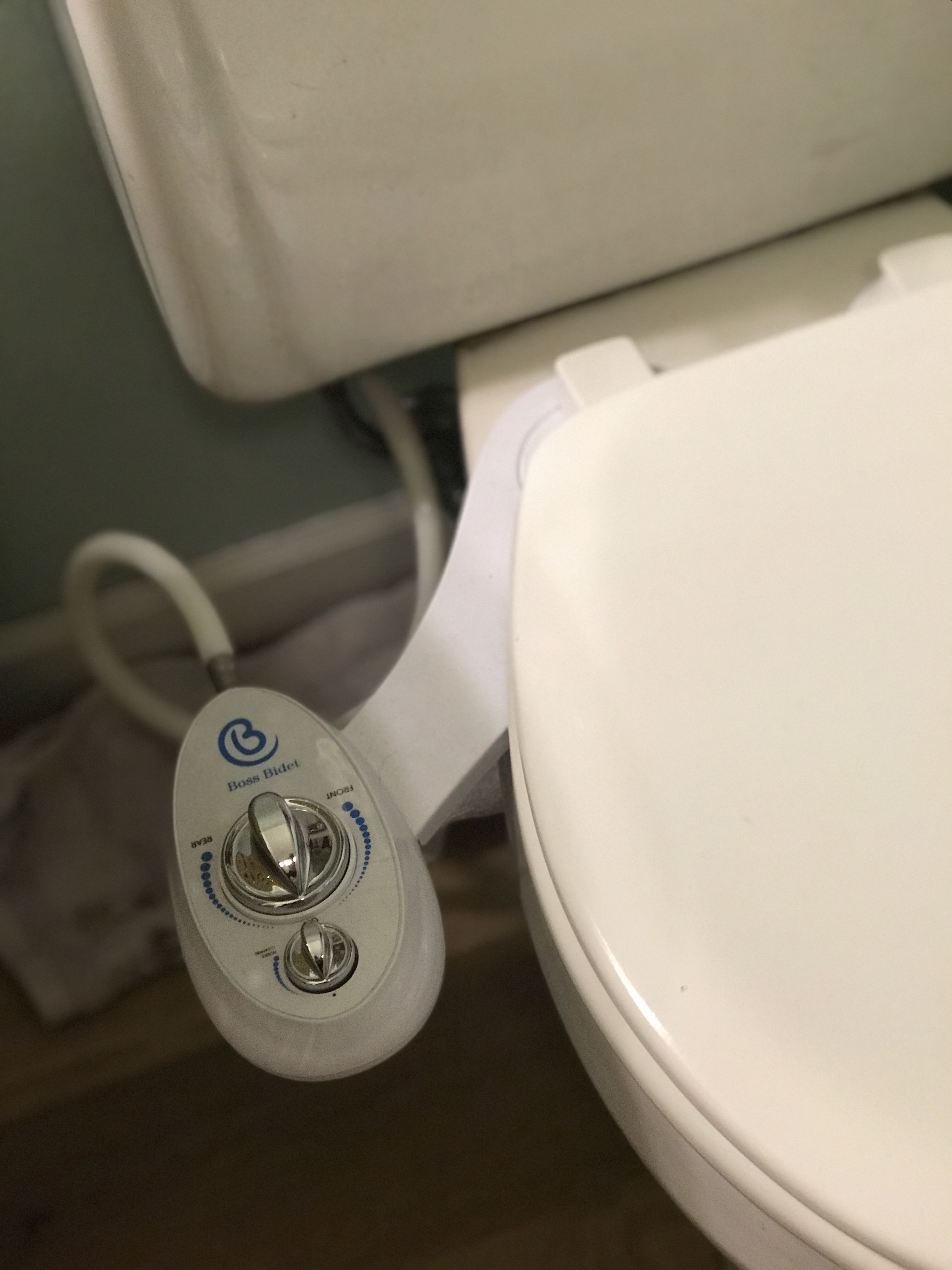 The control would allow different pressure dependant on your pain threshold, but I was pleasantly surprised at its efficiency. Having a jet of cold water directed at my delicate areas was not so shocking as I thought it would be. My only criticism would be the mopping up afterwards. This would take a pad of six sheets of toilet paper to do this job, so the saving would not be that great. Now if only Dyson got his act together and developed the “bum blaster” it would be perfect.