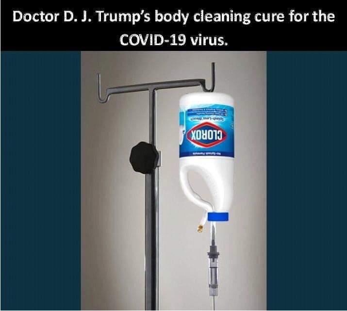 The news was alive with Trump’s latest breakthrough plan for curing the Coronavirus by drinking disinfectant and purging the body with UV light, honestly, where does he get these ideas from, he is the American joke.