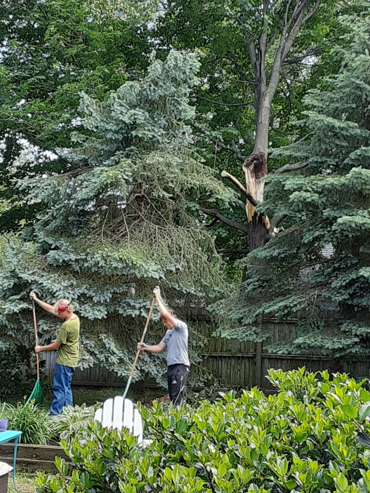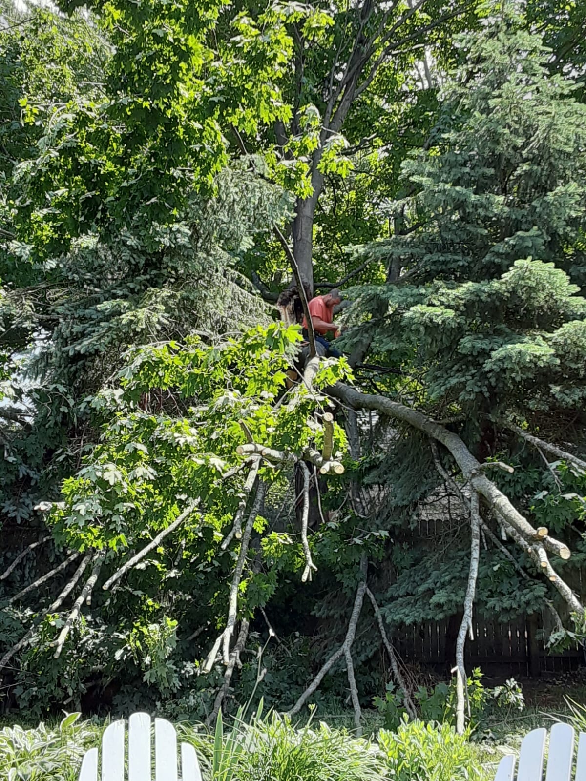 So with straps attached anchoring the vulnerable boughs, they systematically cut away at the remnants of the tree.