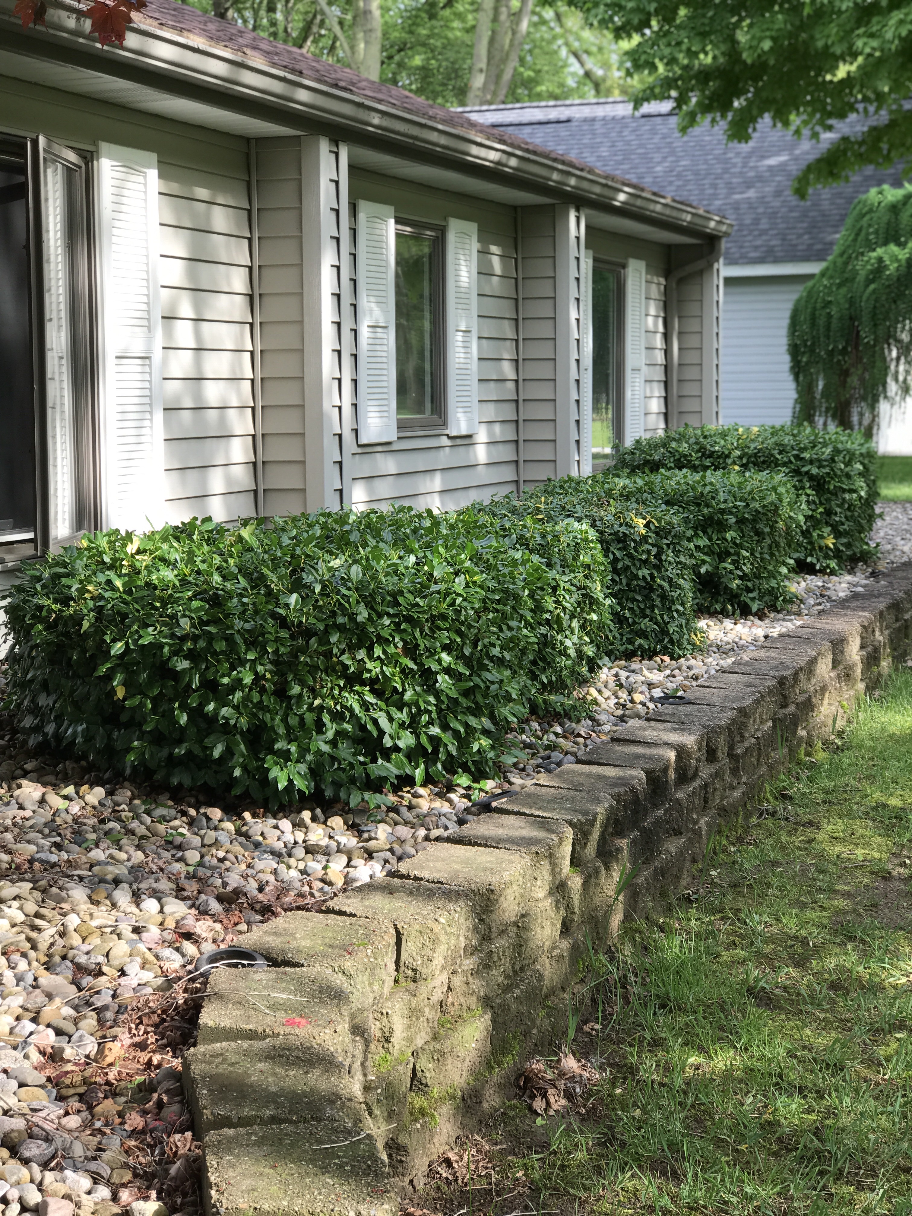 There has been a problem with the hedges at the front of the house, on the berms. They seem to have a disease that causes the leaves to dry up and fall off. At first I thought it was overzealous pruning, but on closer inspection there was infestation on the leaves. We tried spraying with soapy water but that didn’t do any good, so they look a sorry sight.