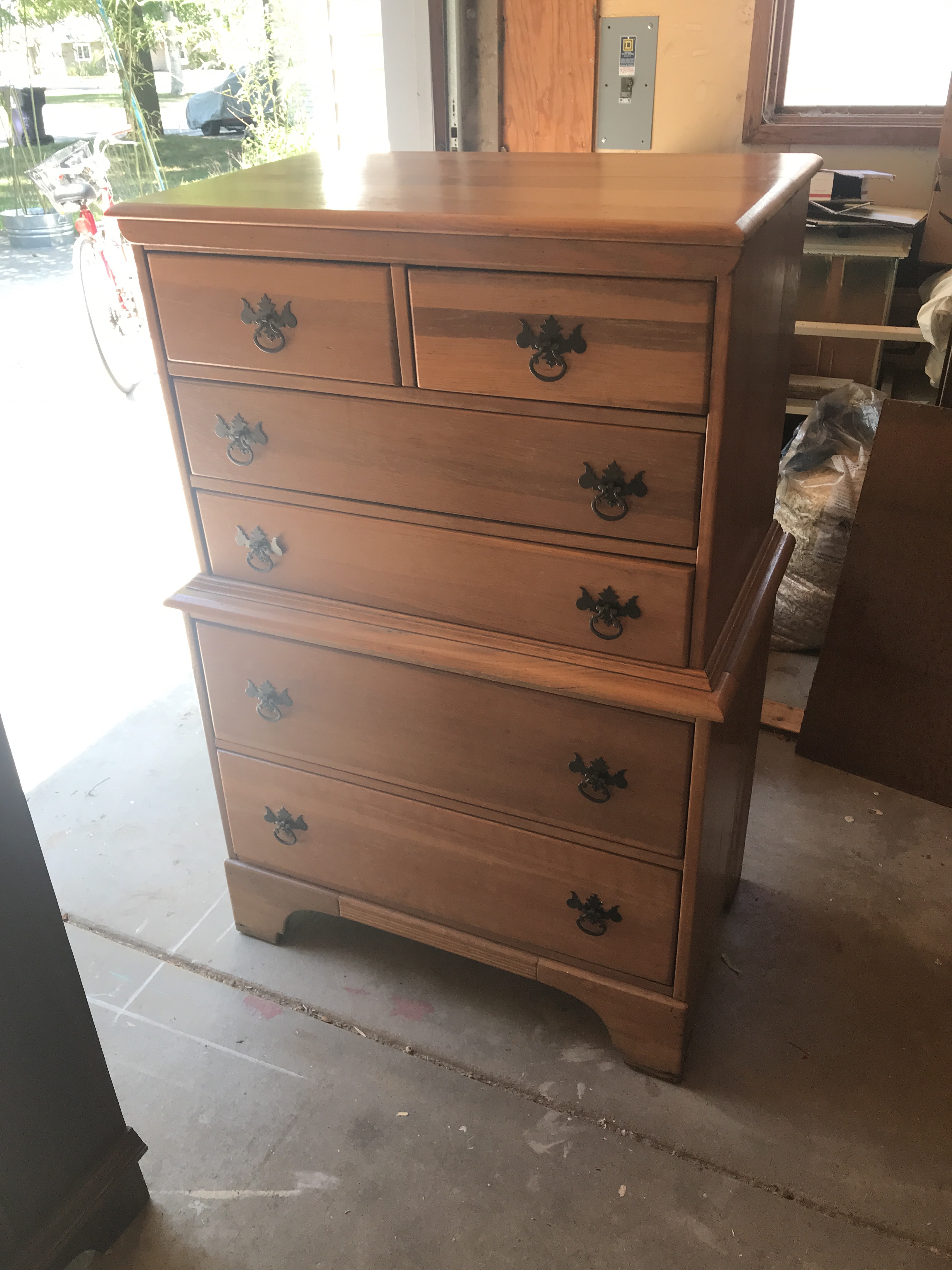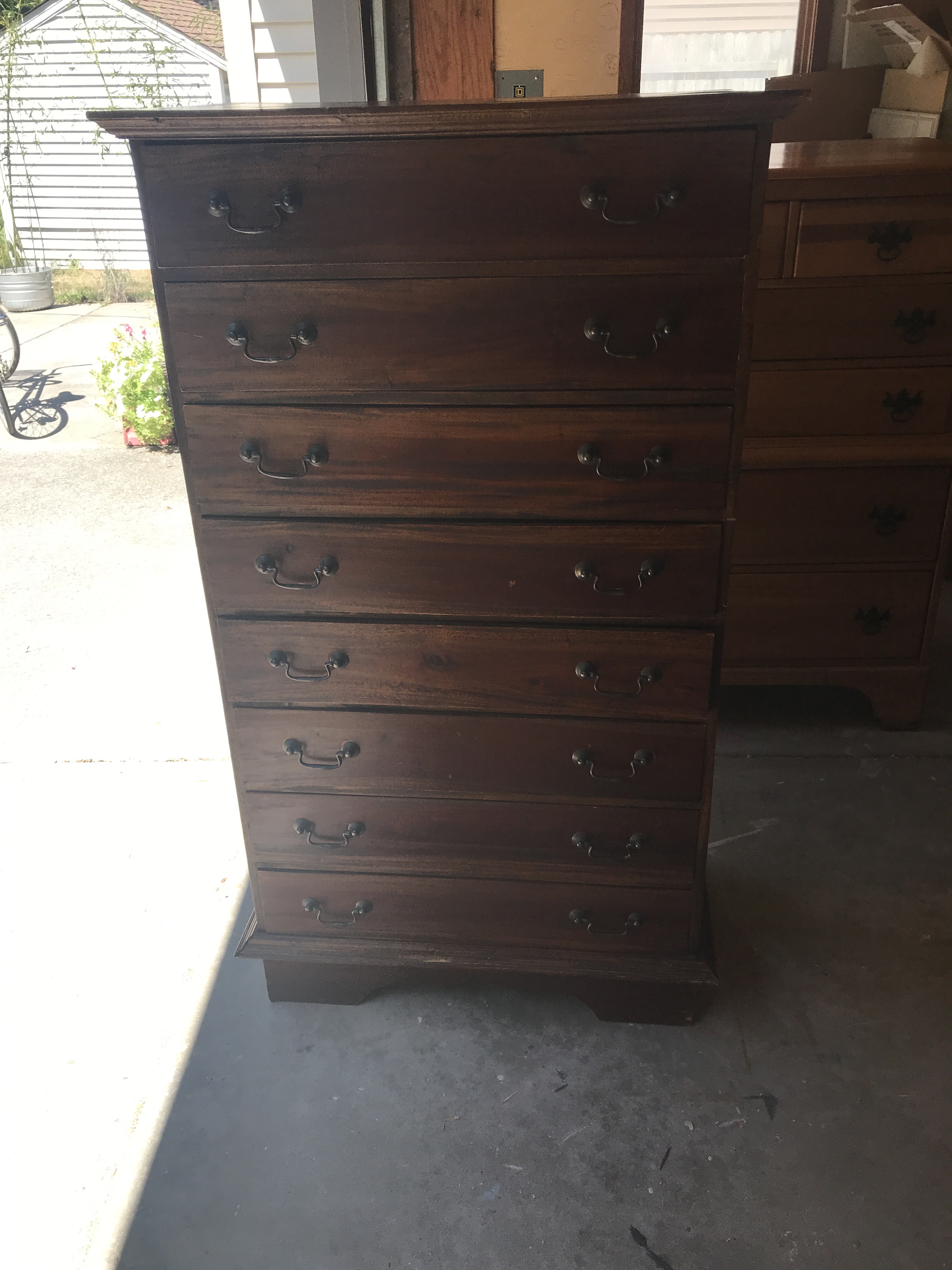 We pulled up at the given address to find a tall eight drawer dresser waiting for us.