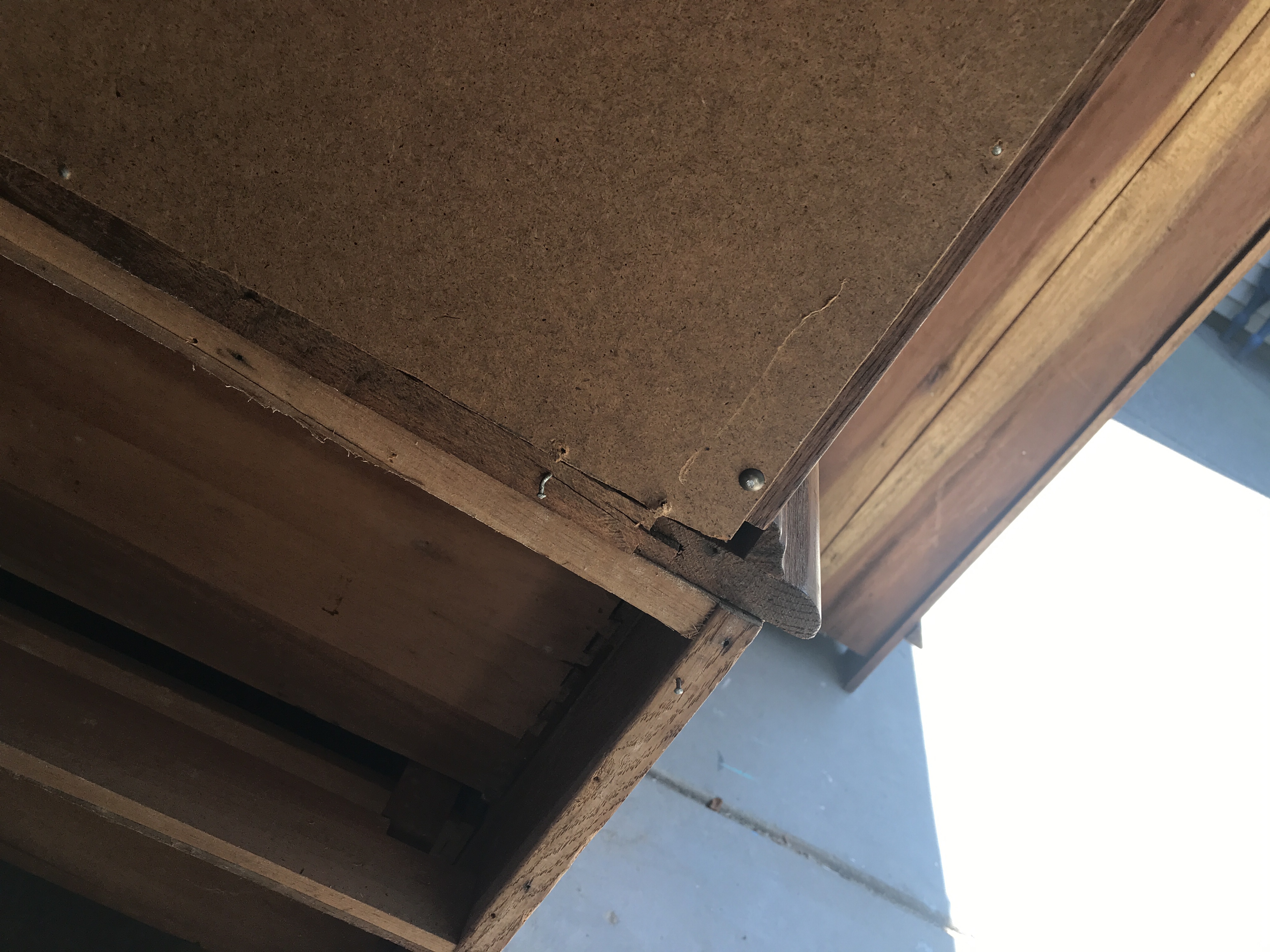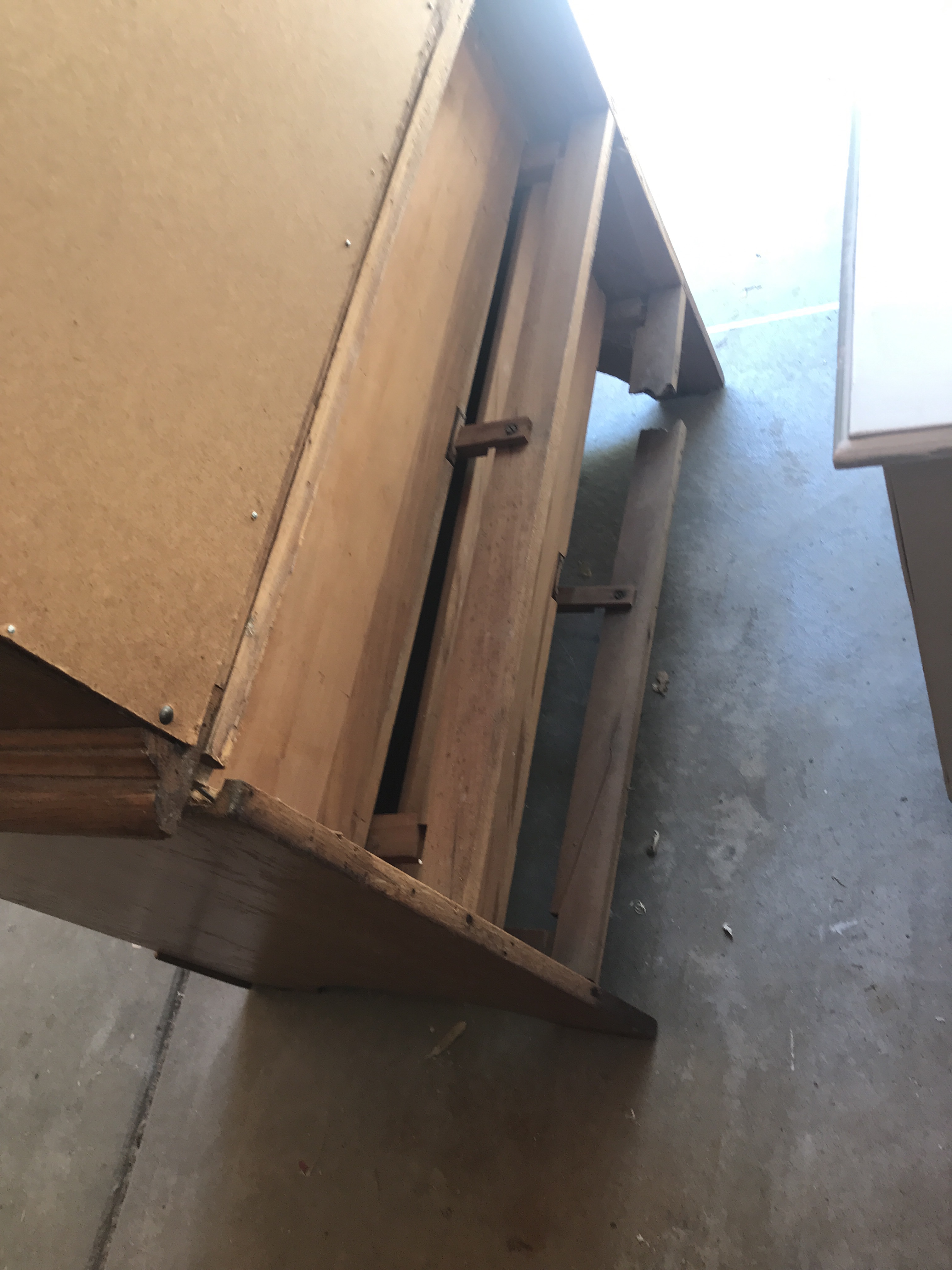 The split dresser did indeed split when we were getting it out. As the back panel fell off I saw more broken and split wood pieces, so I was glad it didn’t cost us anything.