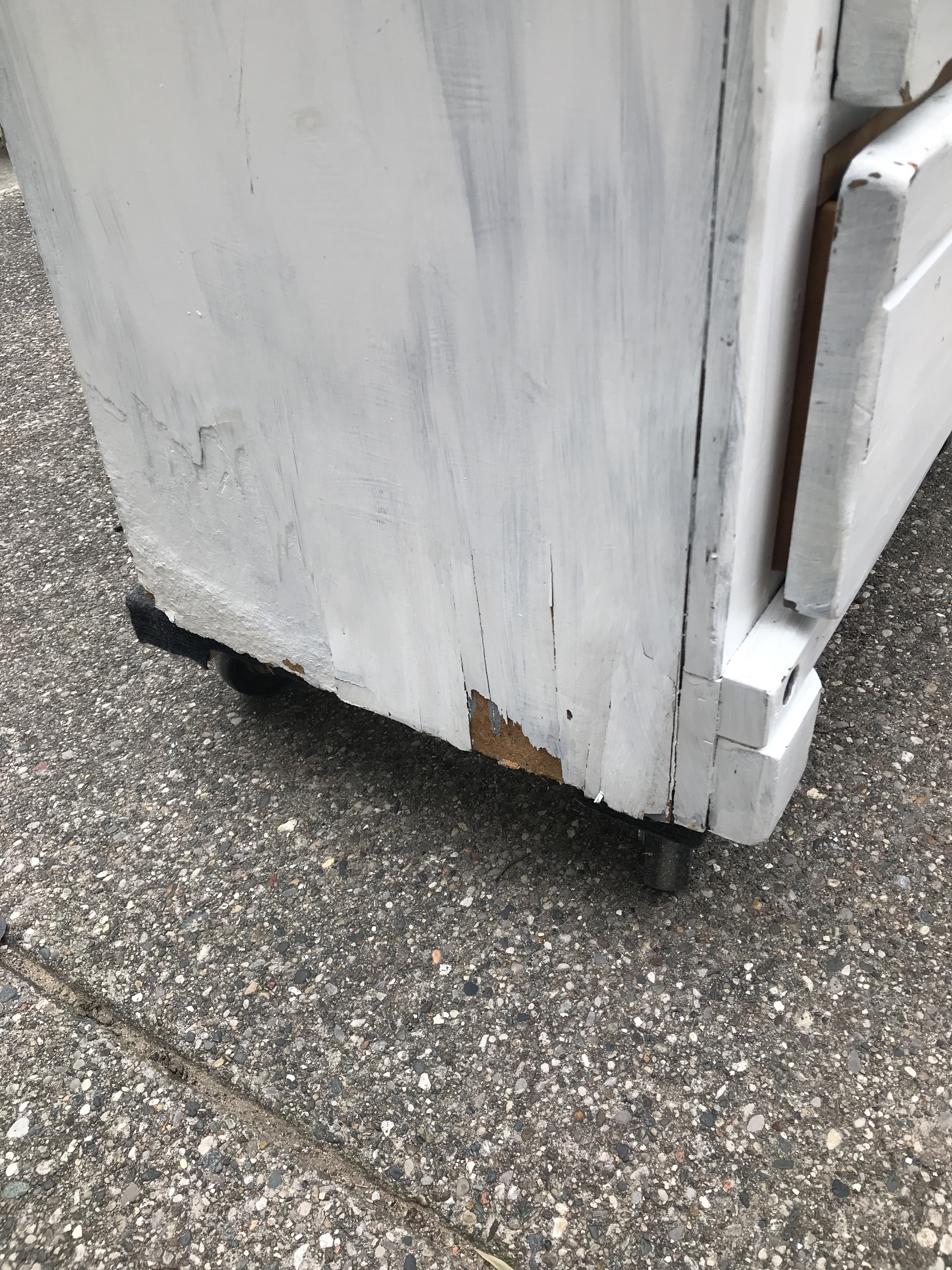 The veneer had lifted at the bottom of the side panels, and the top had delaminated.