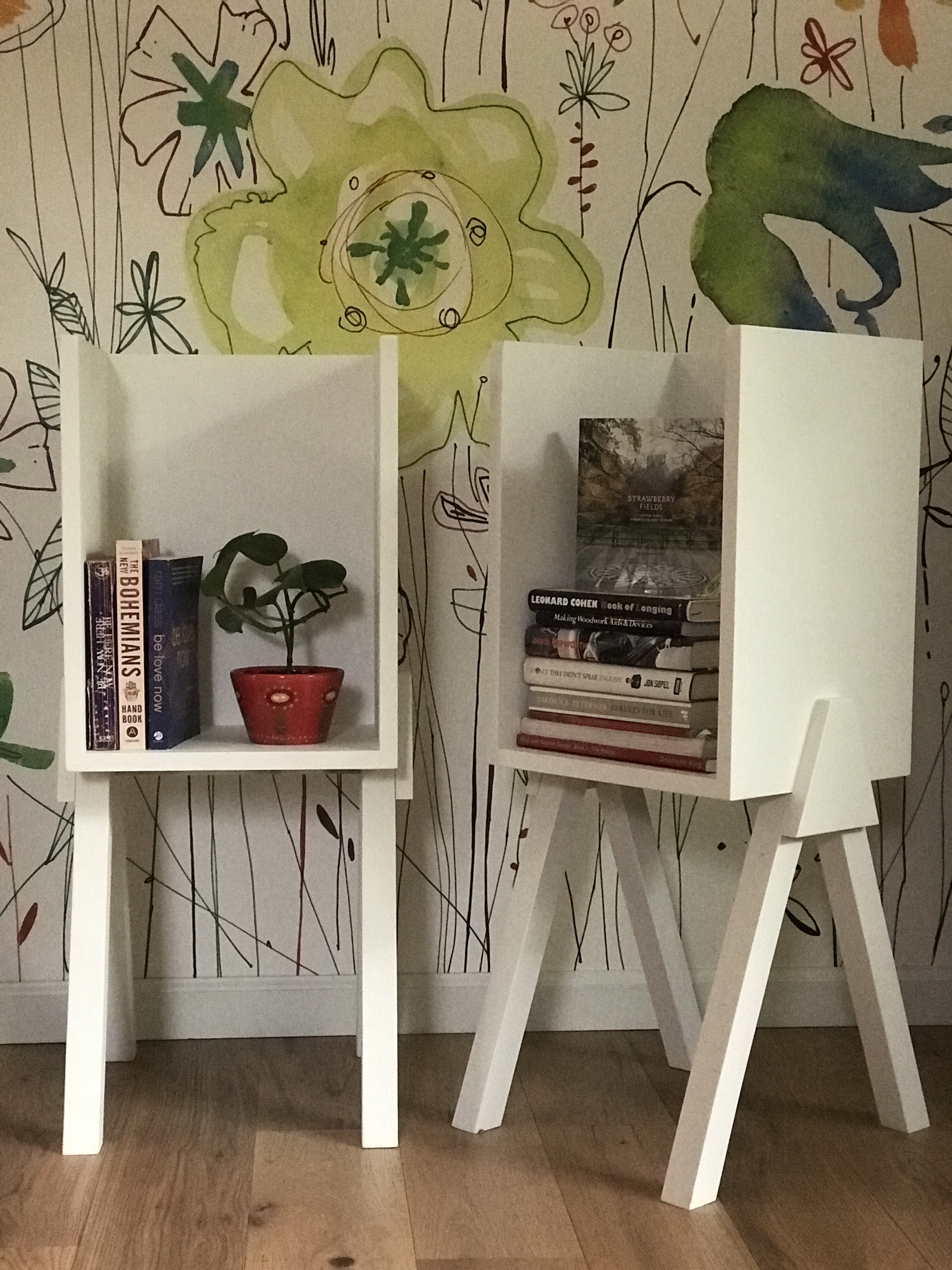 Kelli had a run to Goodwill and picked up a pair of white matching side tables, quite unusual and a bit more modern than most side tables.