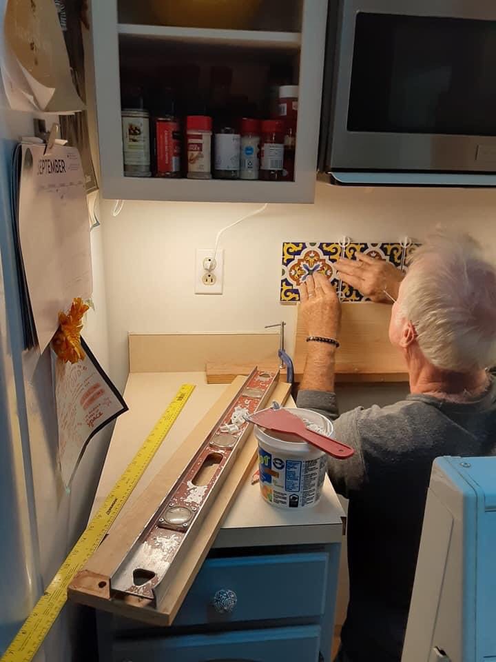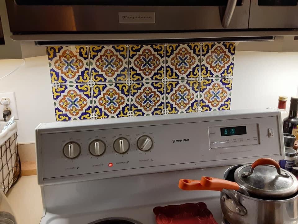 However we did make sure we ticked another job off the list by putting tiles behind the cooker. We had found them at Goodwill a while ago, and they were just the colours we were looking for.