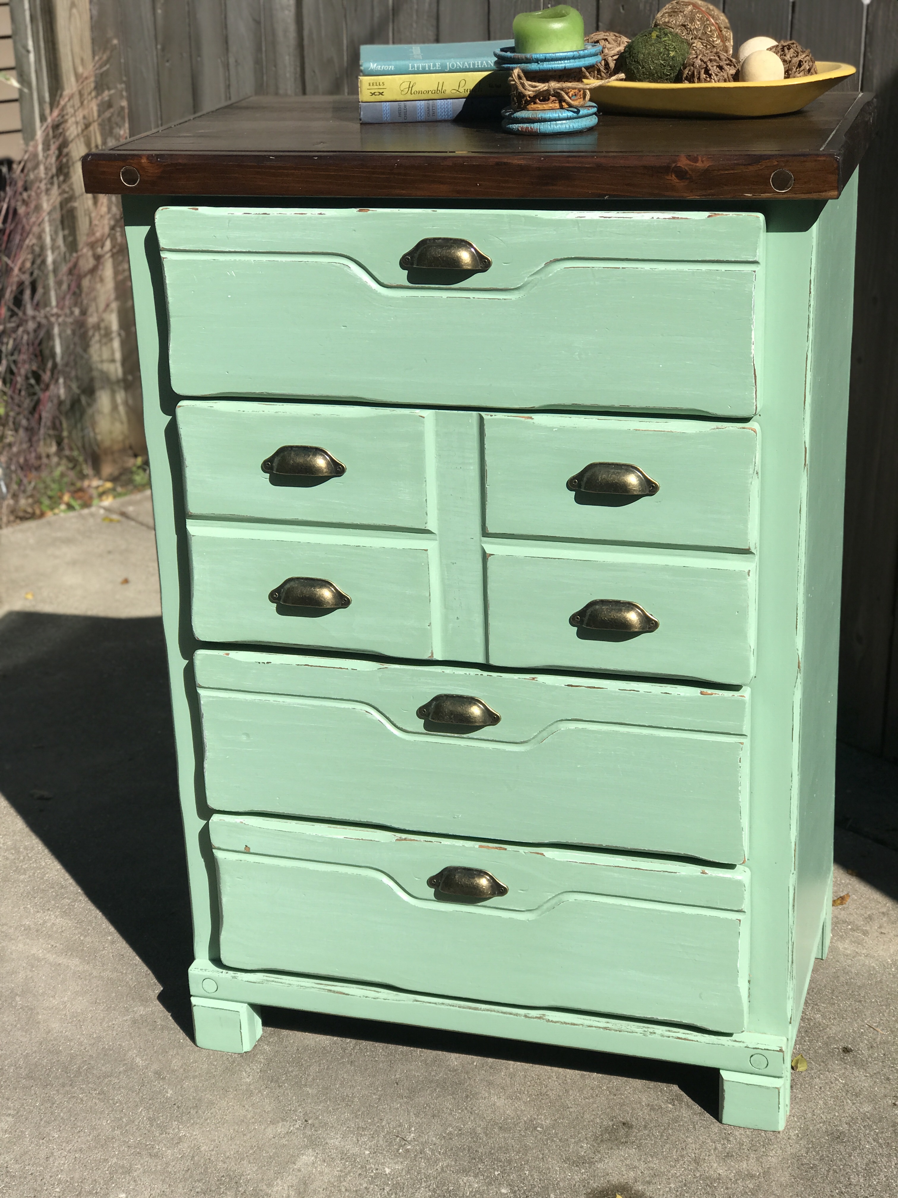 We dragged the green dresser outside to take pictures. This was not a great piece, it was only the fact that it was free gave us any interest in it at all. But Kelli posted it on Marketplace at a very good price, and it sold very quickly, I guess our standards of taste are not the same as other people’s.