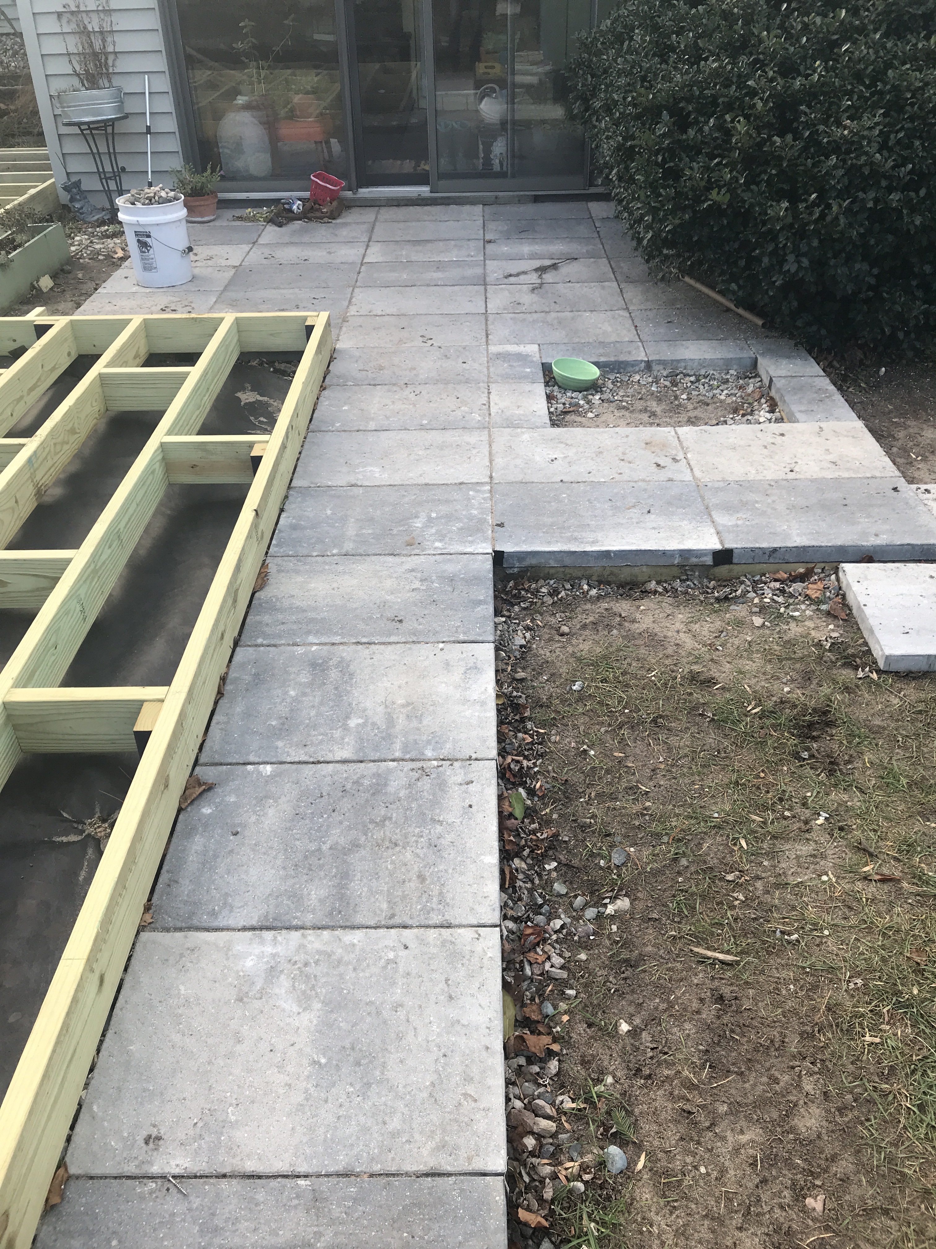 My plan was to lay the paving slabs to create an apron for the raised deck in the back garden. The weather was forecasted to be dry, so I was excited to make a start.