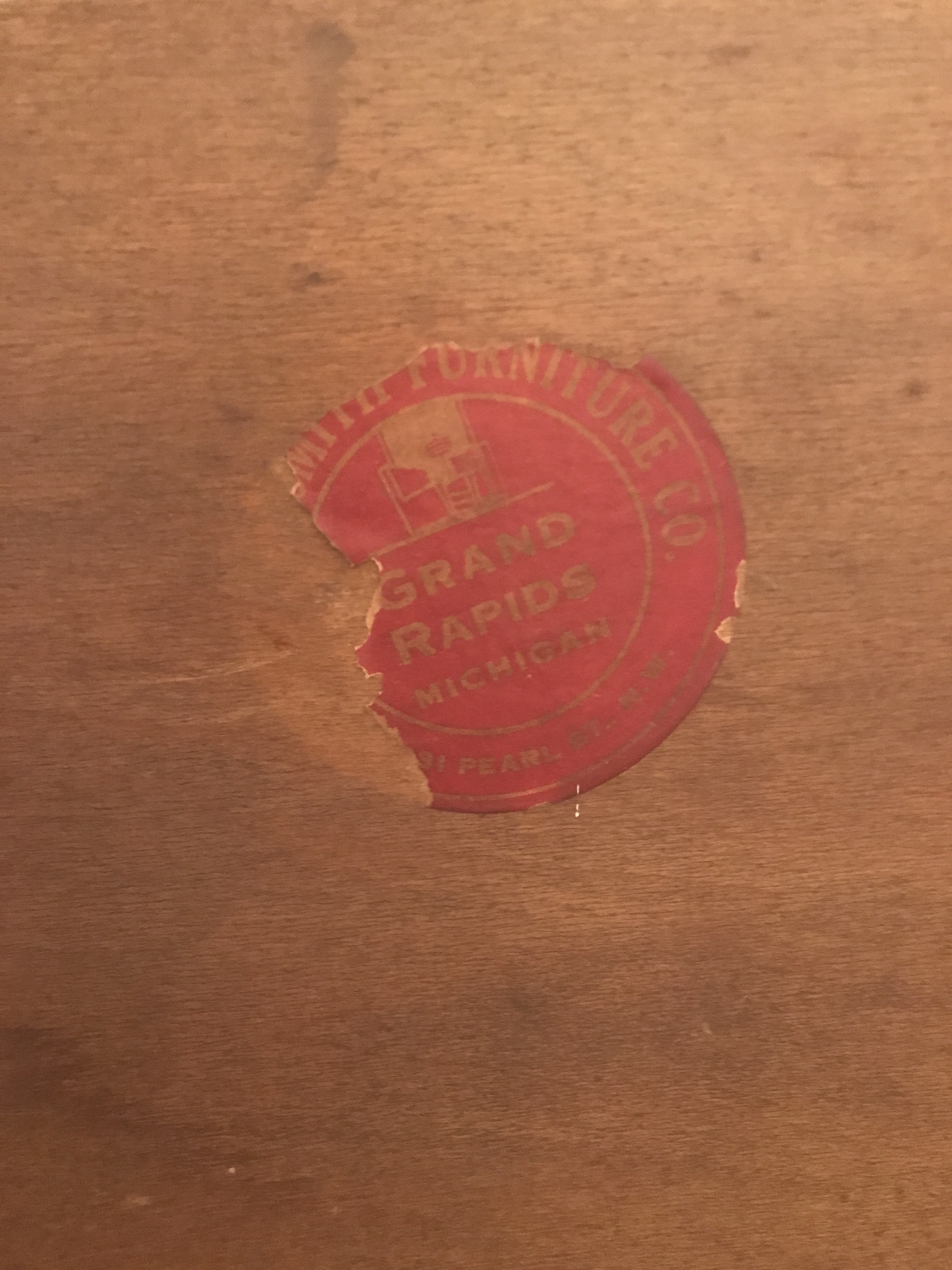 The piece is obviously quite old, it had a partial label on the back panel. The details that could be deciphered was “ Harley Smith Furniture of Grand Rapids” I tried to get some information on the company that appeared to have disappeared in 1950, but little is known about them.