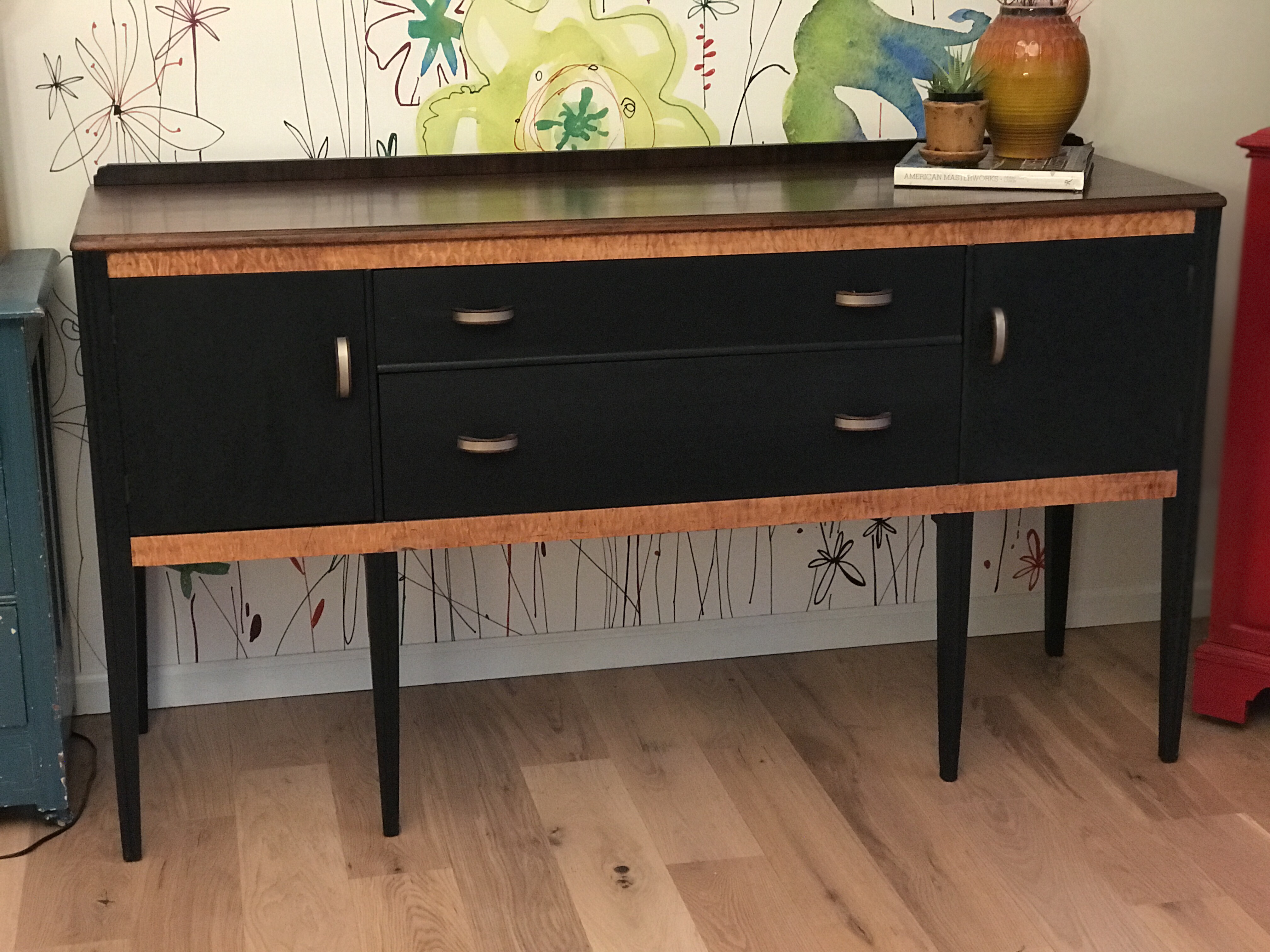 The buffet was also finished today, it was longer than I thought at five foot six inches making it difficult to photograph in the space we had, but it came out pretty well.