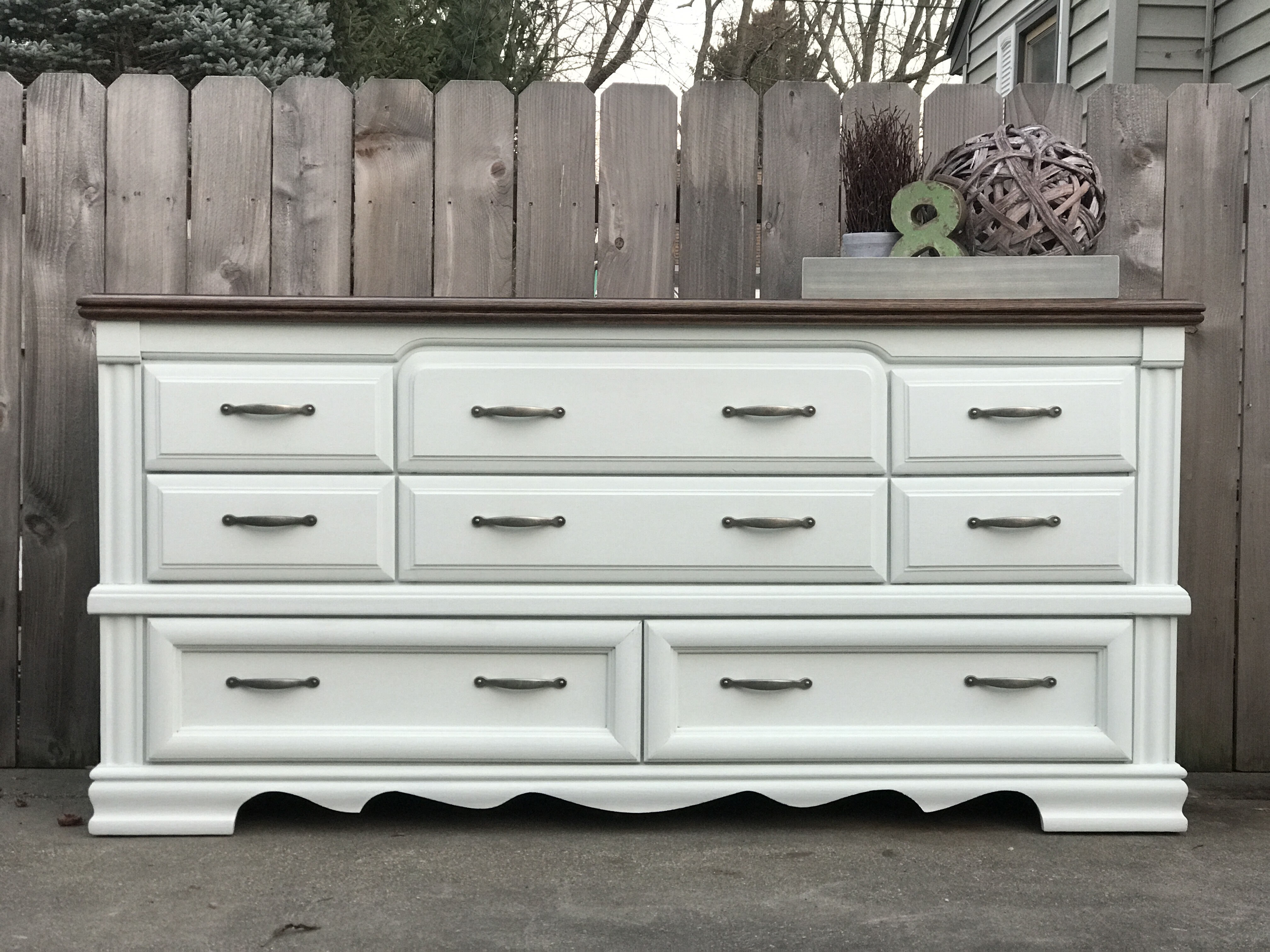 We finished the long dresser and dragged it into the house to take pictures, but it was too long for the space we had, so we had to carry it outside.