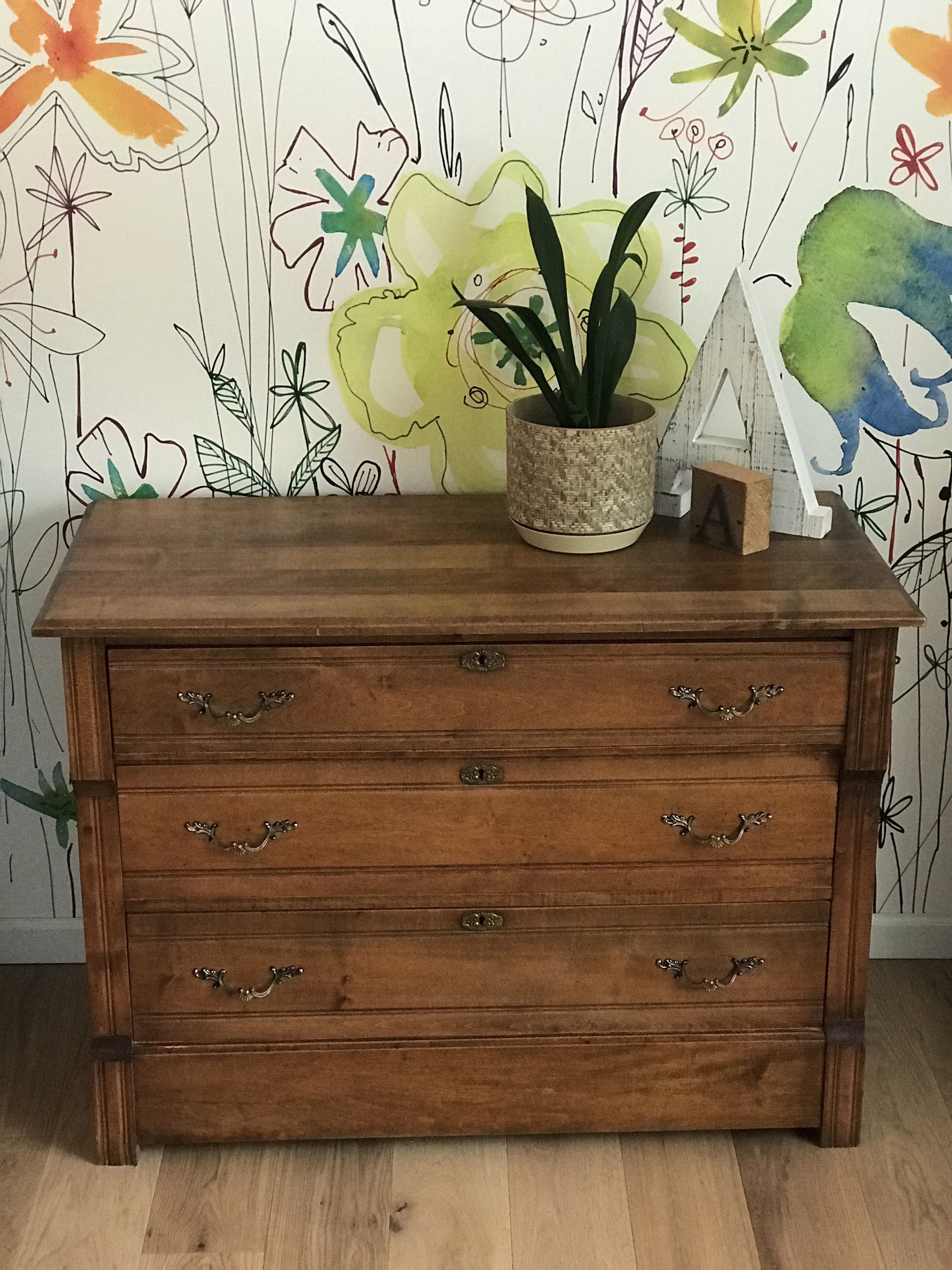We finished another dresser and carried it into the house to be photographed. It doesn’t look that we did much work to it, being left unpainted, but the top was stripped back restrained and refinished and all the drawers needed repairs to all the drawer sides.
