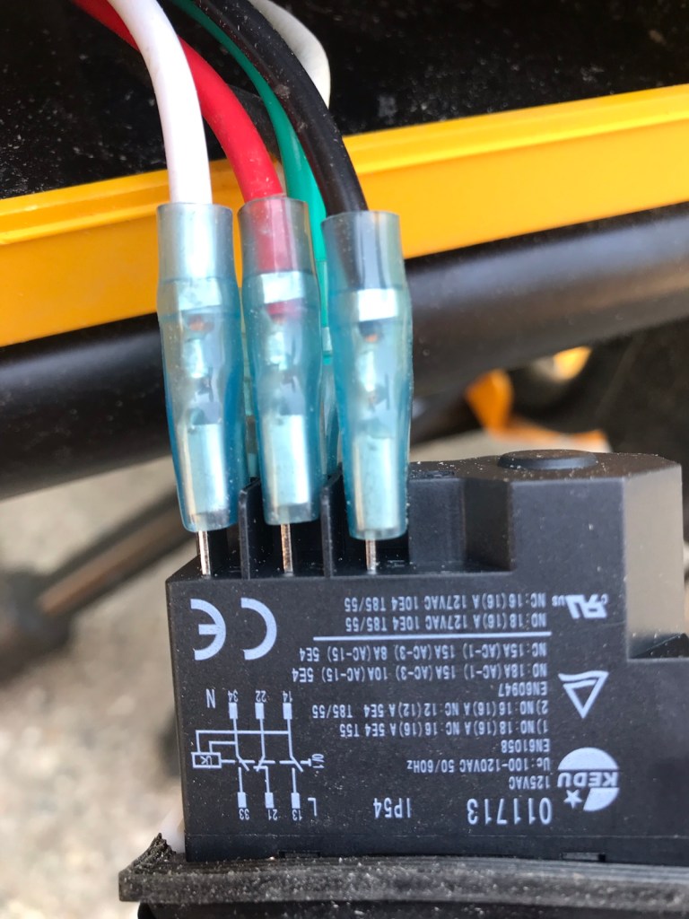 Once that was out, with depressing a couple of tabs and it was out. Then there was pressure on to attach the terminals correctly, there were six. Eventually I had it reassembled and fitted back in the saw, now came the crucial test.