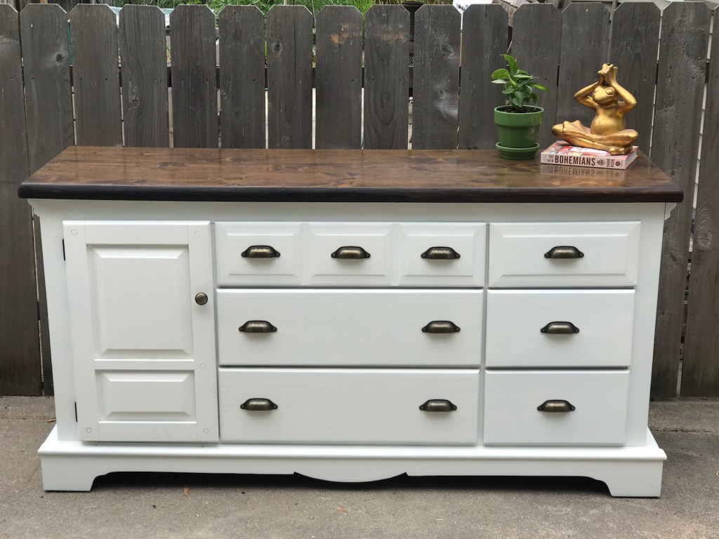 First we had to finish what we have started. I had to repair one of the desk pedestals that had damaged to the base that had to be replaced, whilst Kelli finished the large dresser so we could take pictures and post on Marketplace.