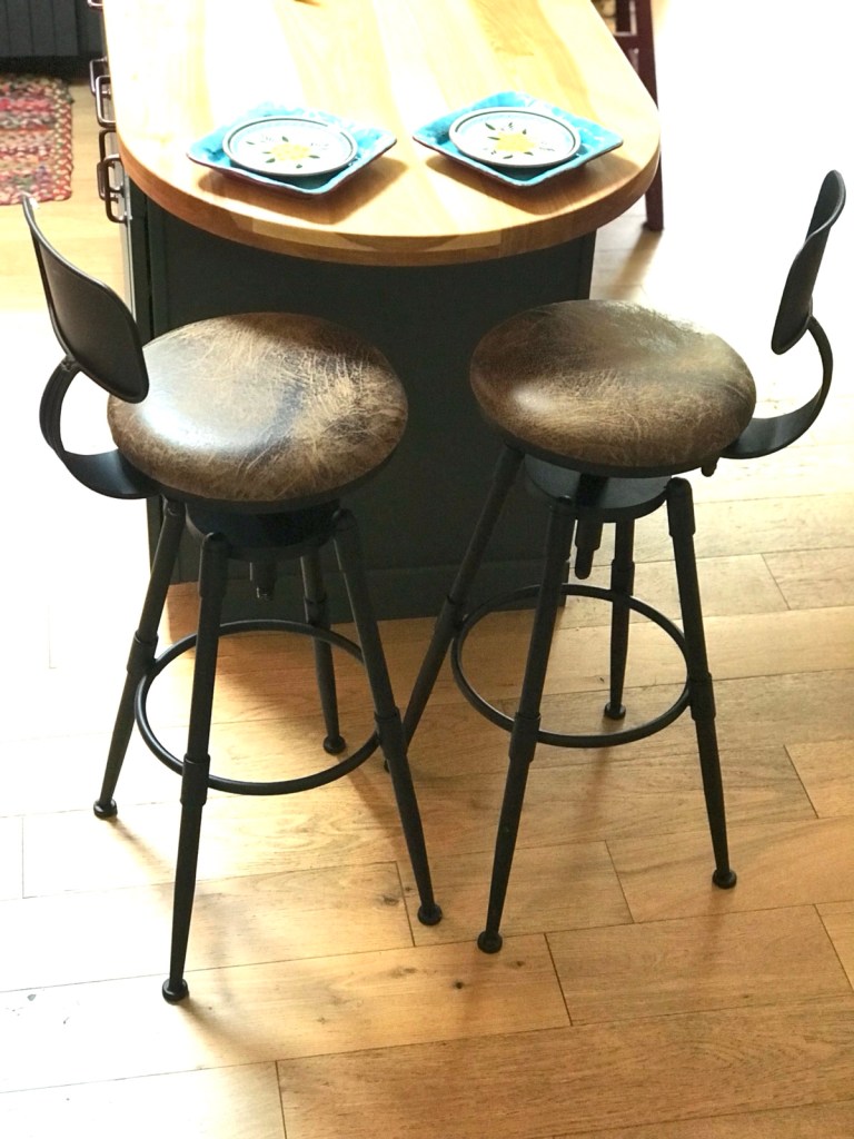 We finally took the bar stools out of the truck. Kelli had called Larry about doing a repair to one that had a cracked tack welds.
