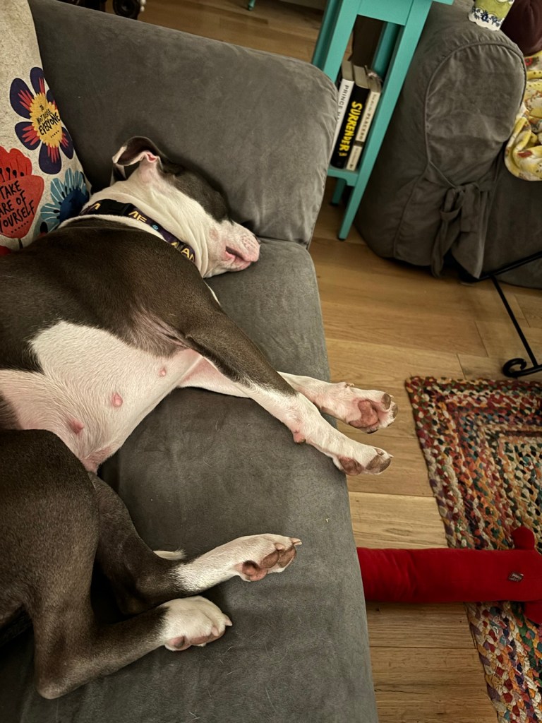 When we finished and came back into the house Dhama and Phoebe were asleep on the couch with Milly nowhere to be found.