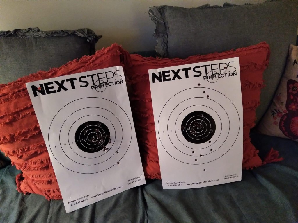 Once the indoor stuff was done we moved down to the range. This is where the rubber hit the road. Two targets were stapled to a couple of plywood panels that didn’t have much plywood left. Then there was more training, the stance, how to hold the weapon, and then came the loud bit.