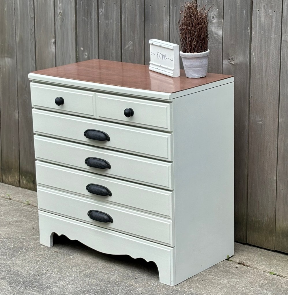 We finished another dresser, and took pictures once the sun had stopped making shadows on our background. It went on Marketplace straight away looking a lot different to when we got it.