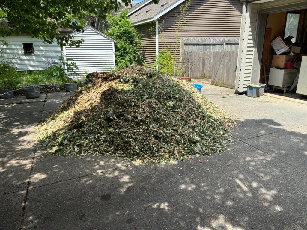 In a lull of activity Kelli talked to one of the men about taking the chippings. He was happy to drive the truck to our place and dump it in our driveway.