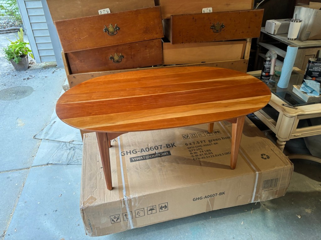 I manage to seal and get a coat of finish on the coffee table, the cherry wood exploded with its red streaks, the top will need another four coats to obtain the finish I want.