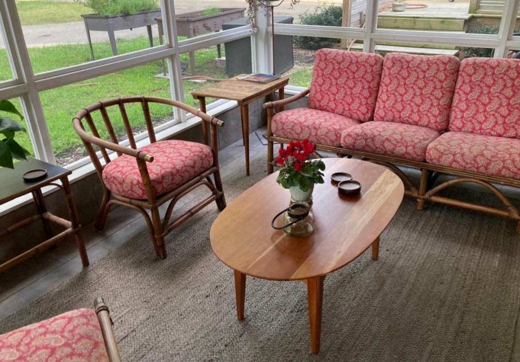 I also finished the cherry coffee table, the lady picked that up this evening, she loved the red streaks, and she later sent a picture of the table in her sun room.