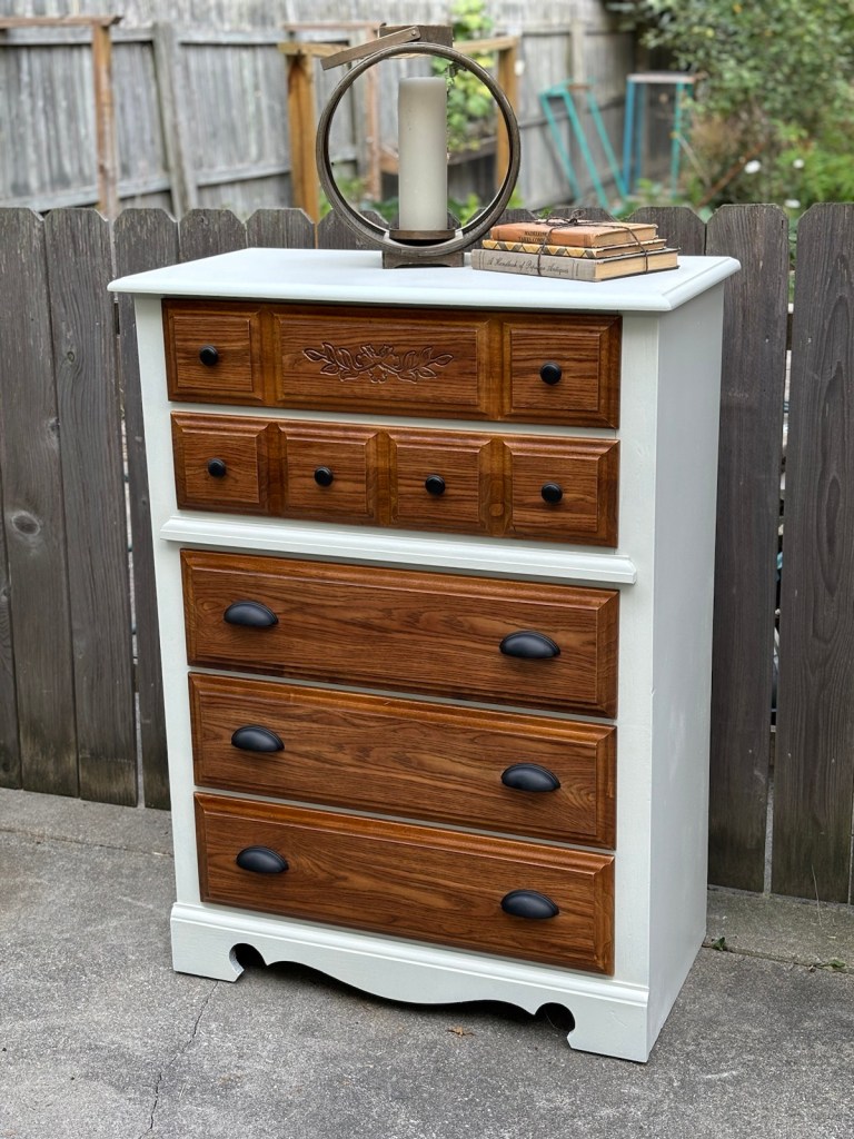 We finished off another dresser which was quick and dirty, considering what it was before we started, it didn’t turn out that bad.