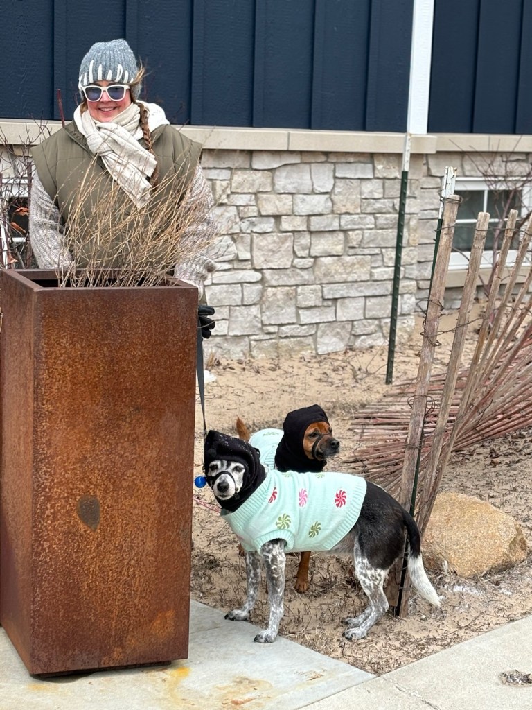 The dogs were dressed in coats and hats, and highly embarrassed by the choice of garments.