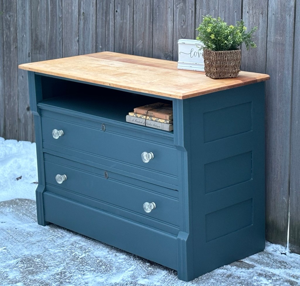 There is more snow flurries about as we loaded the Mid century dresser and matching Side tables into the truck. First we had to extract the large bugger we collected a couple of days ago.