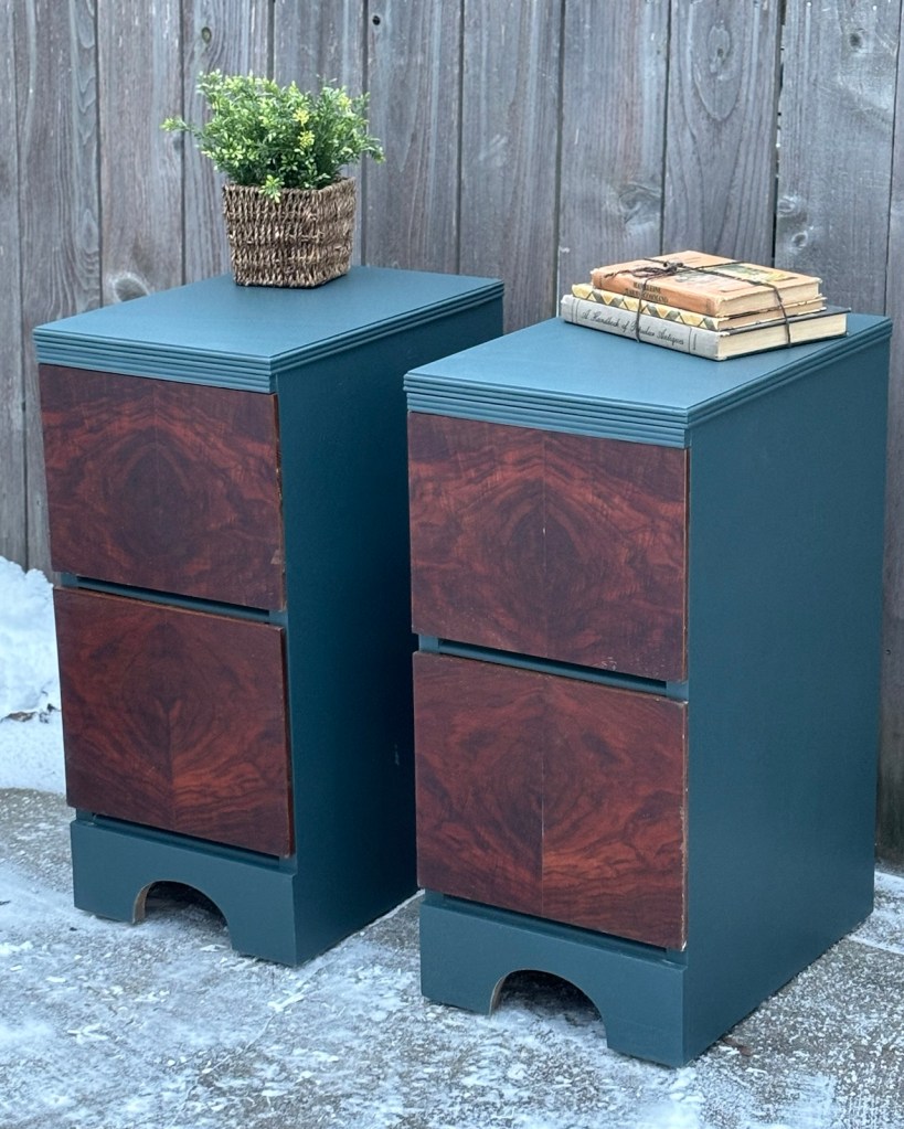 We took pictures of the TV stand and two matching side tables outside, and Kelli posted them.