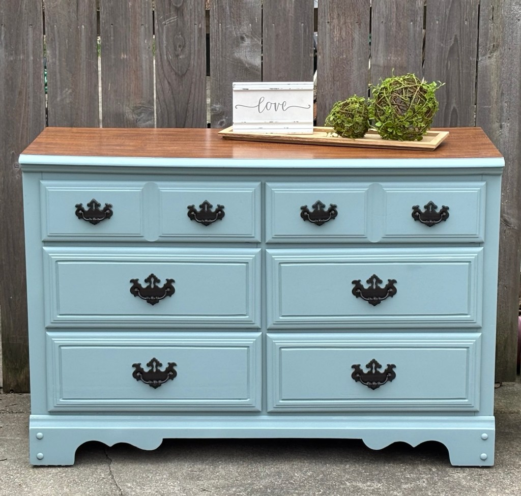 It was a warm day again, so the garage door was wide open, I was able to start scraping the paint off another dresser.