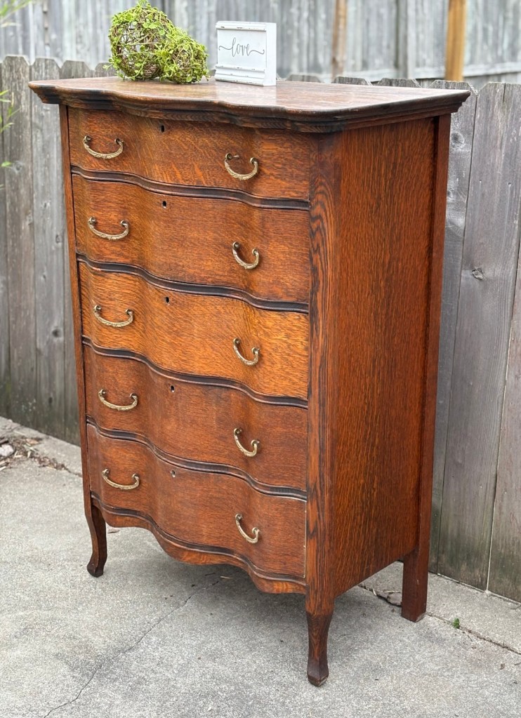 We dragged our latest furniture piece outside to take pictures, there were still things I needed to fix, like a floor in the top drawer and a runner on another, but these could be fixed quickly. Kelli was keen to hit the Sunday Marketplace scrollers, so that’s what we did.