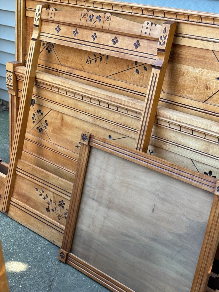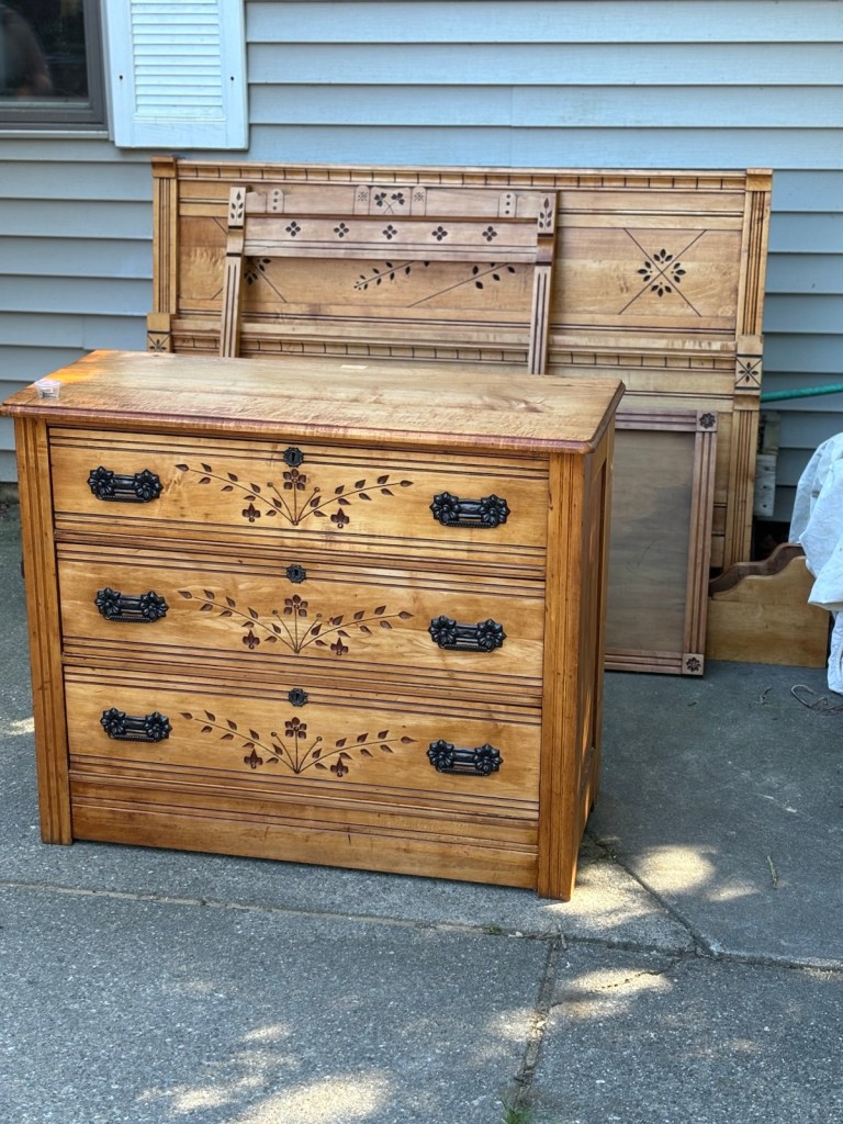 We finally finished the commission job of stripping and refinishing of the bed frame, mirror and dresser, that was hard, but now it’s done.