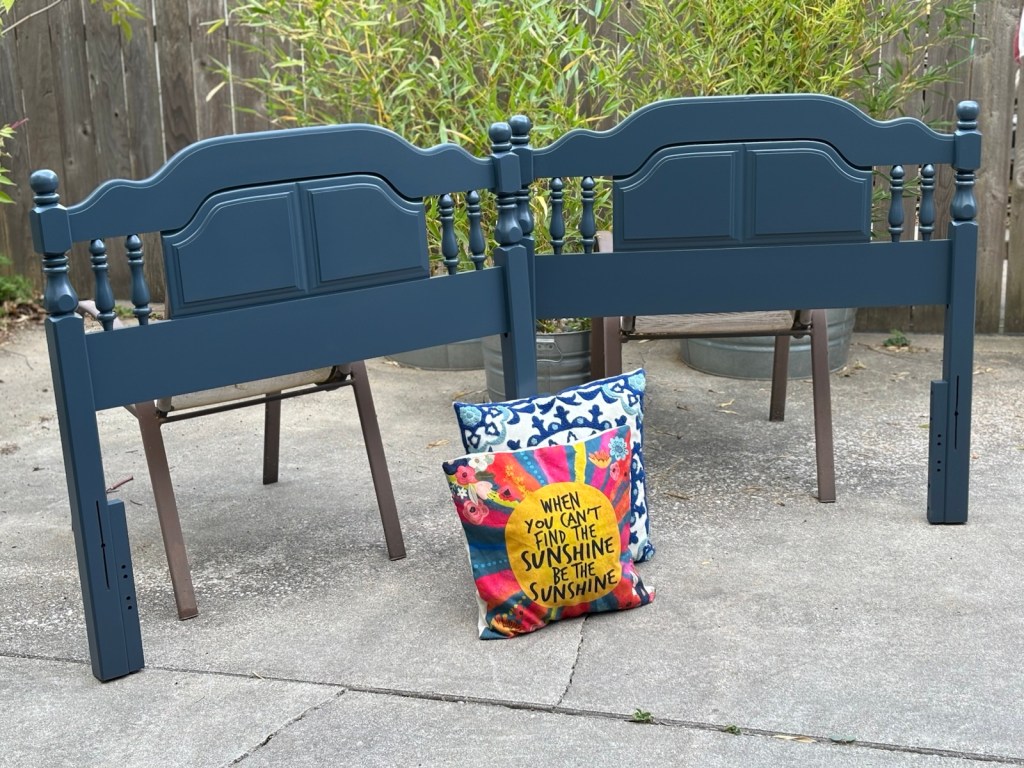 Kelli finished the two matching headboards in a bold blue, these were posted, and awaiting new owners.